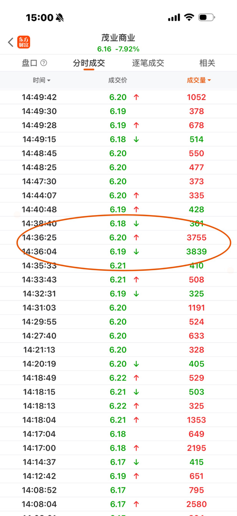 盘后复盘:辛辛苦苦做T盈利的,今天都亏回去了。复盘分时图的成交,看到今天一直在吃