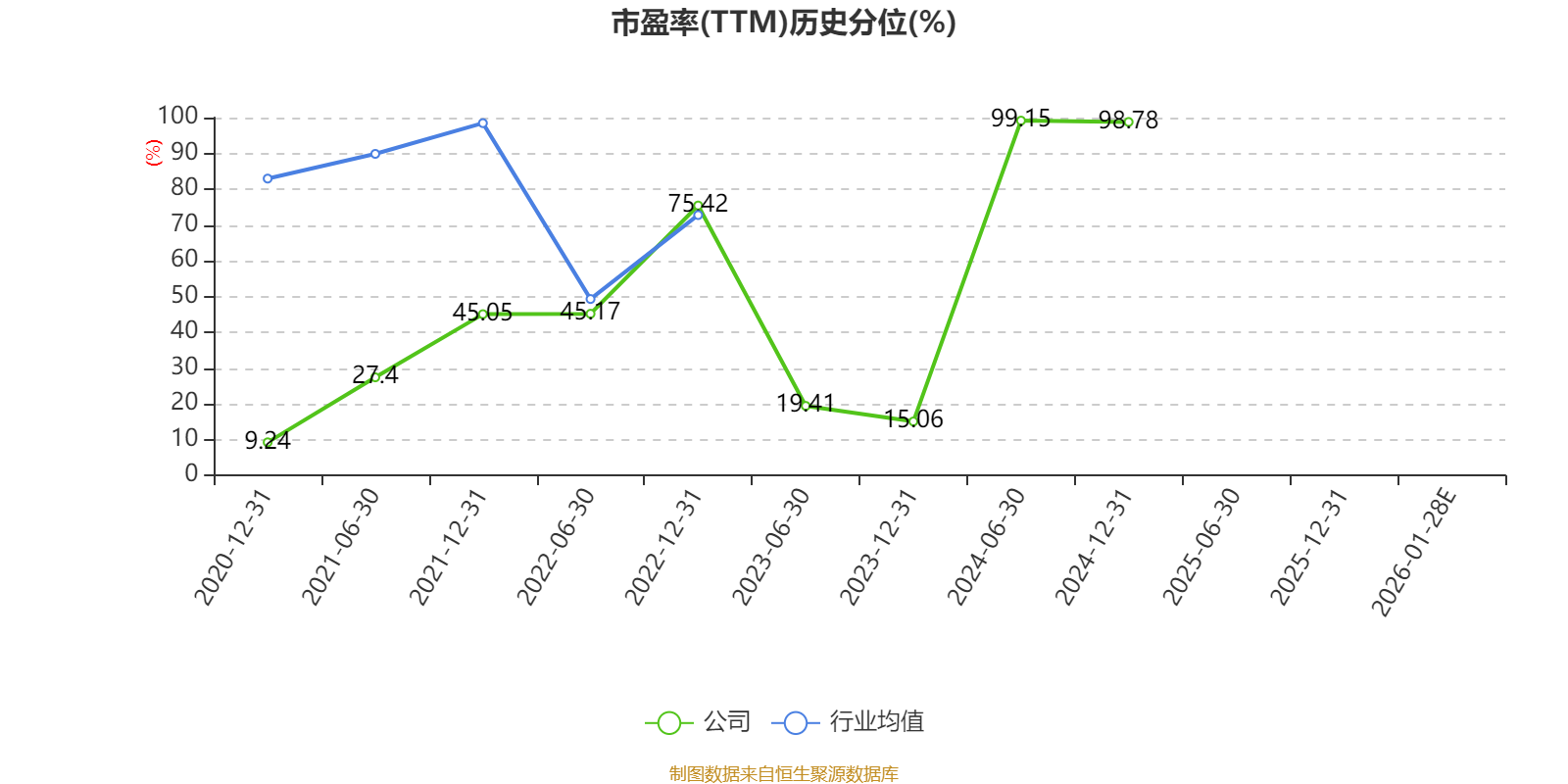 市盈率、市净率为负时,不显示当期分位数,会导致折线图中断。