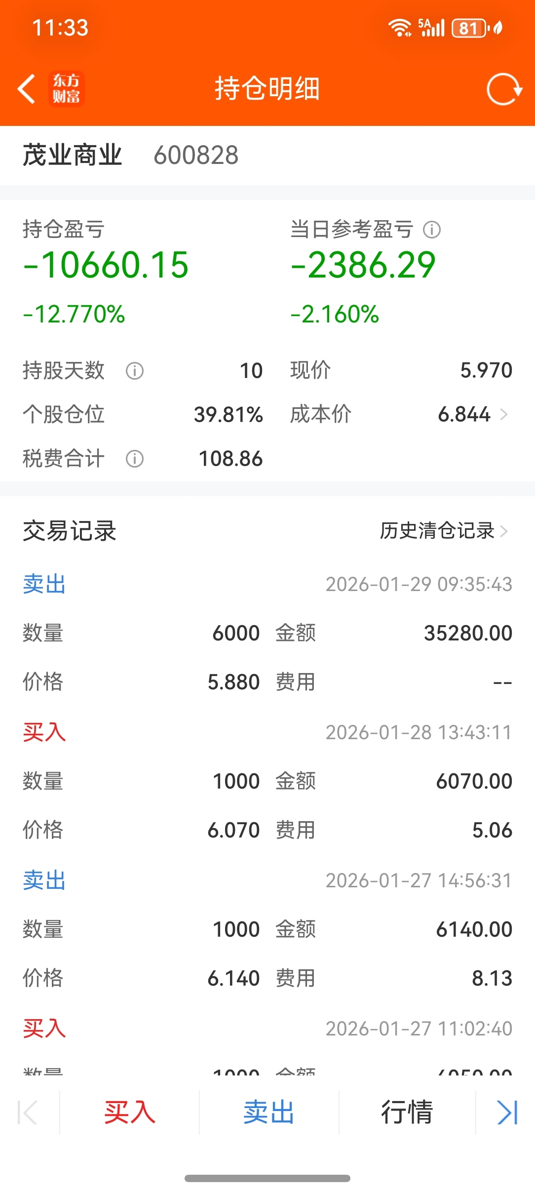$茂业商业(SH600828)$ 遭不住了5.88割了差不多一半,