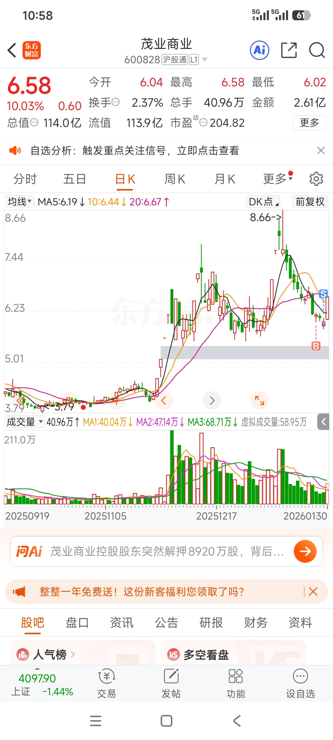 $茂业商业(SH600828)$ 差点过年钱就有了