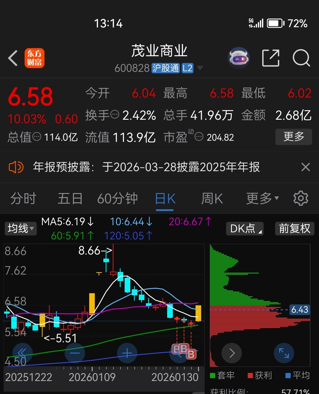 $茂业商业(SH600828)$ 还好昨天加仓了