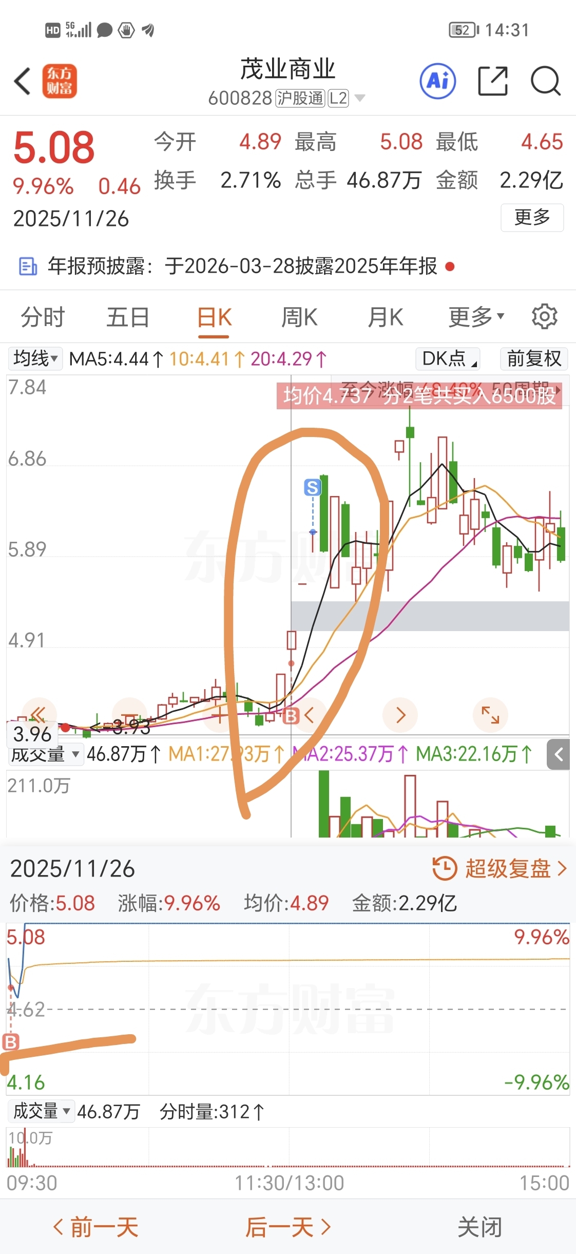 前段时间东百第一天涨停我卖飞了,茂业二板上车,今天早盘负2均价买的友好。为什么我