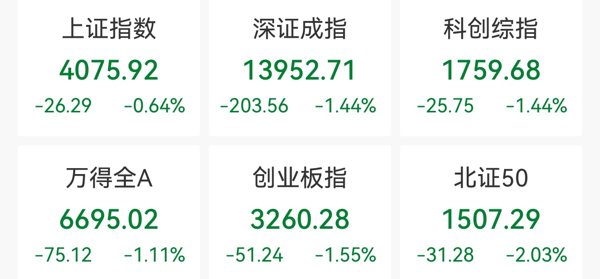 中新经纬2月5日电 5日,A股低开震荡,创业板指领跌。截至收盘,上证指数跌0.64%,报4075.92点;深证成指跌1.44%,报13952.71点;创业板指跌1.55%,报3260.28点。