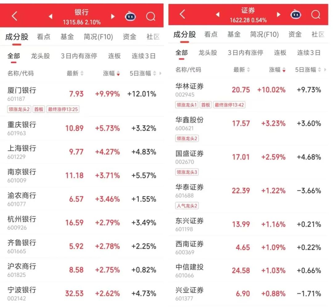 今日午后,大金融表现活跃,银行、券商板块持续拉升。