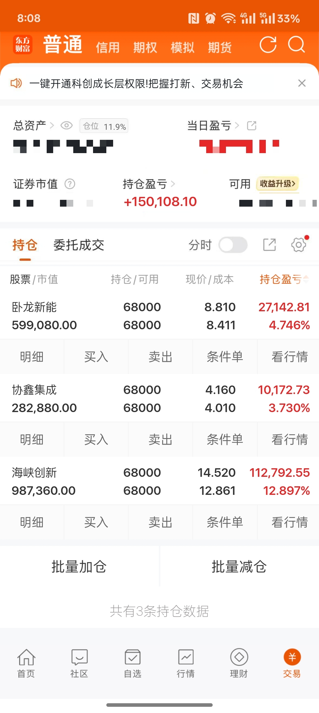 目前持仓:卧龙新能 这个位置看好五日均线即可