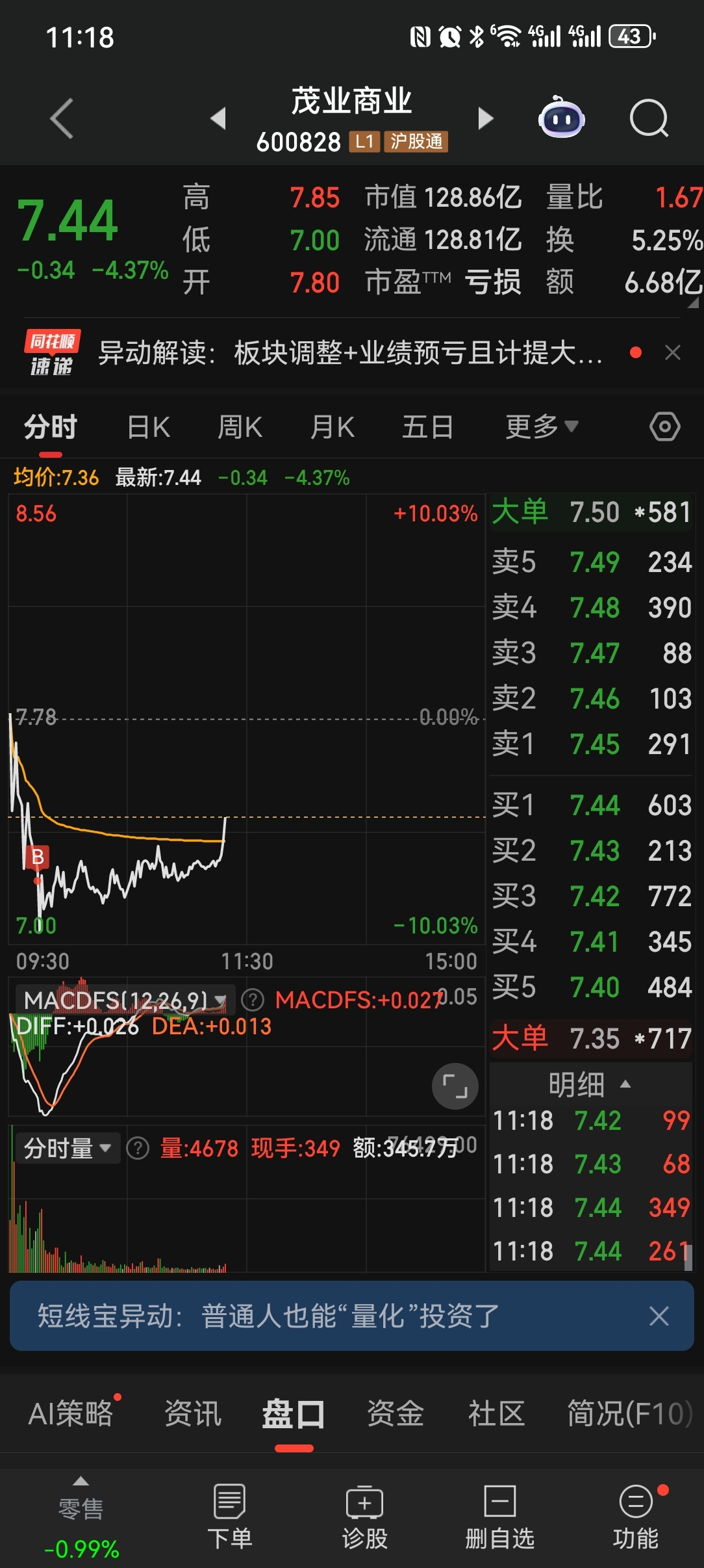 $茂业商业(SH600828)$ 今天能不能给力点,地板买了三江跟你