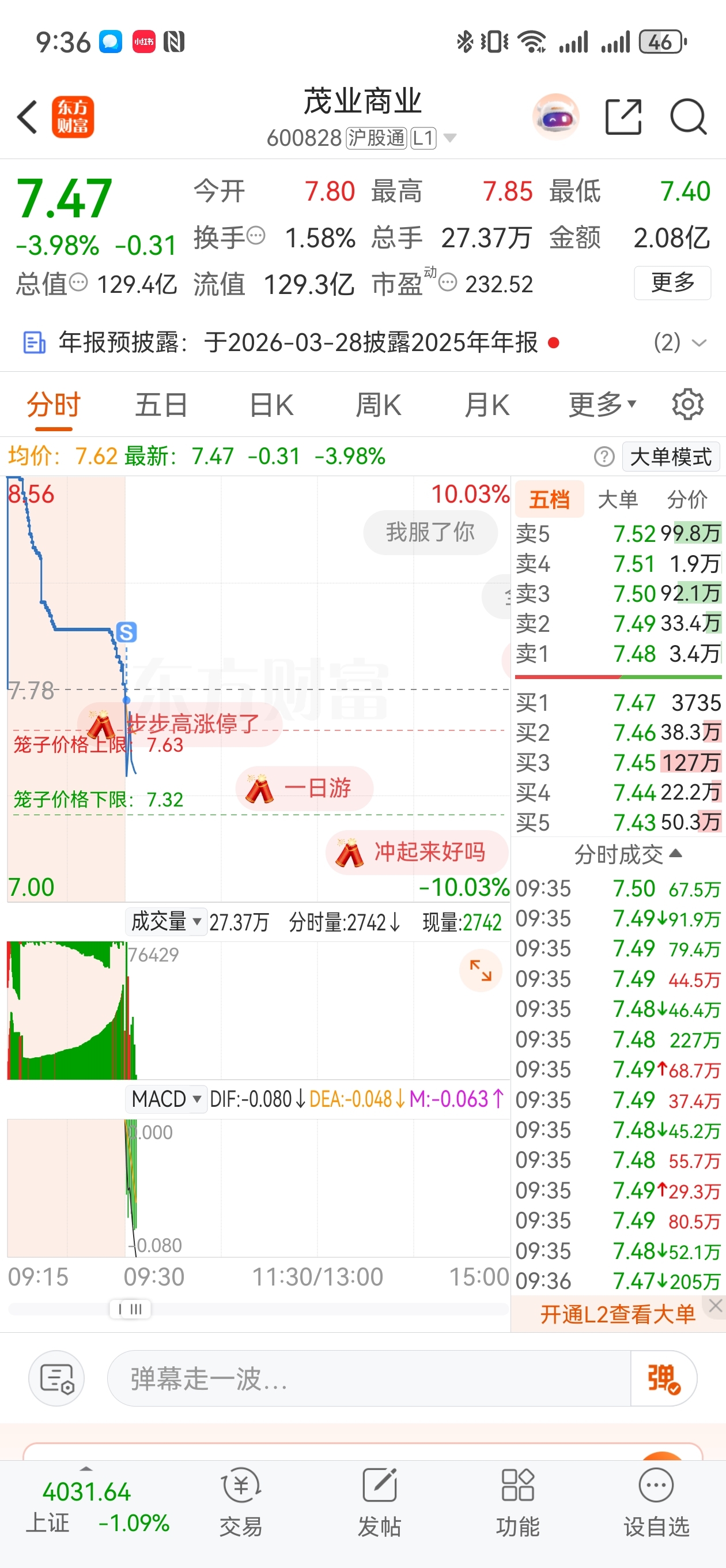 $茂业商业(SH600828)$ 昨晚涨停太多人晒单了,今天开盘我抢跑,祝留下的发财,趋势还在