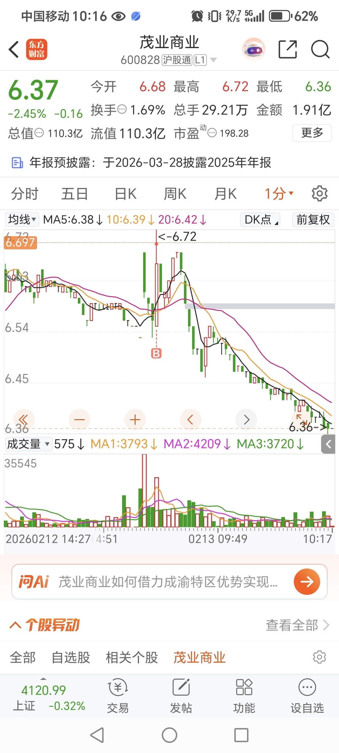 $茂业商业(SH600828)$ 桩是老木生病了吗?继续砸盘救母,几手都砸,大过年的,就差那几手的钱?真特么恶心,没格局的玩意。