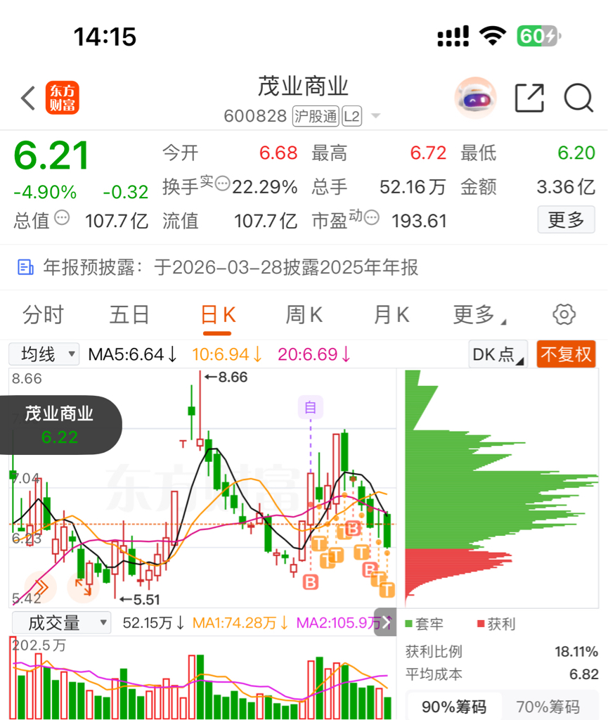 $茂业商业(SH600828)$ 接着t,亏完就不炒了
