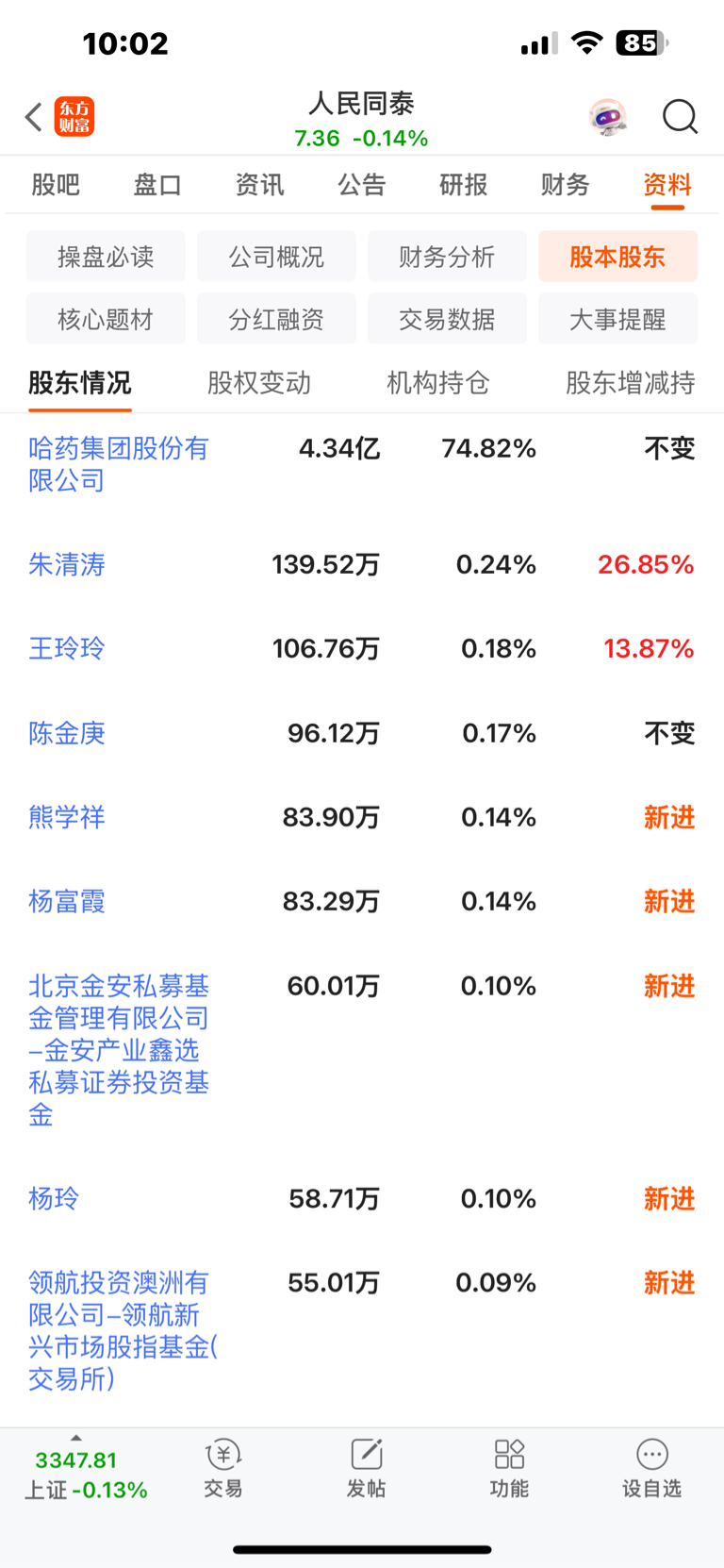 $人民同泰(SH600829)$ 十大股东近期都增持了所以跟着入的。