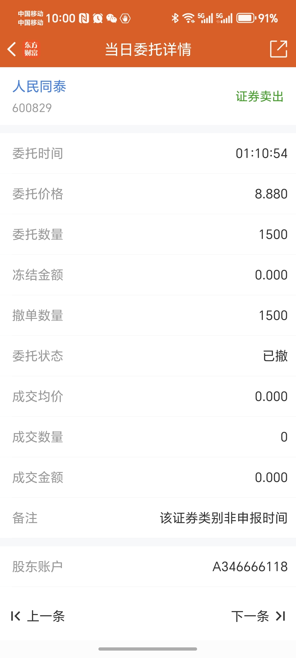 $人民同泰(SH600829)$ 昨晚挂了8.88的,今早撤单了