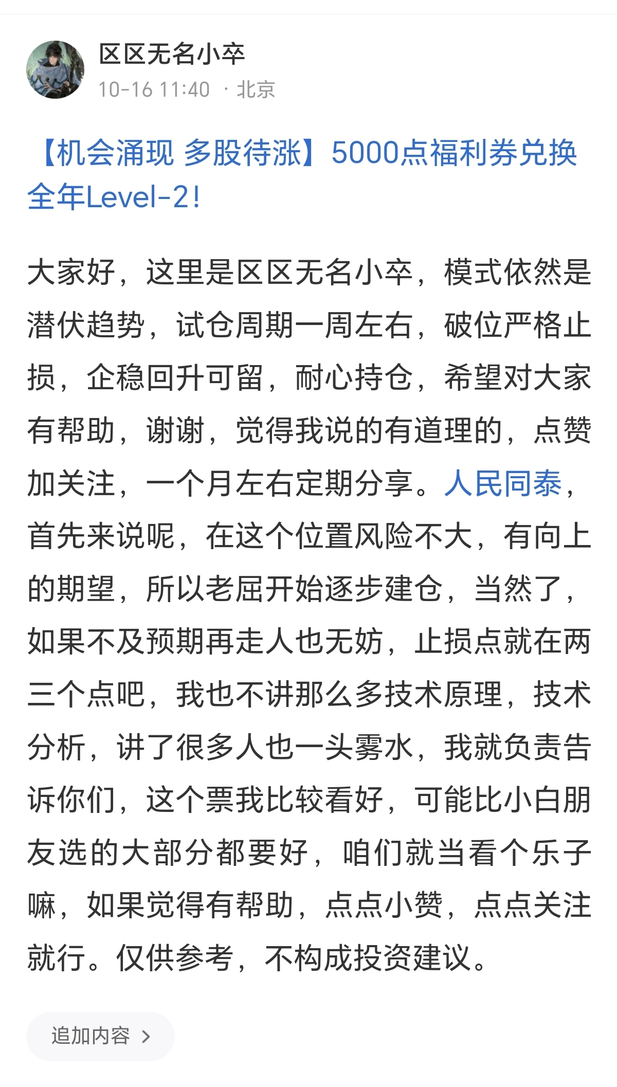 郑重声明:用户在财富号/股吧/博客等社区发表的所有信息(包括但不限于文字、视频、音频、数据及图表)仅代表个人观点,与本网站立场无关,不对您构成任何投资建议,据此操作风险自担。请勿相信代客理财、免费荐股和炒股培训等宣传内容,远离非法证券活动。请勿添加发言用户的手机号码、公众号、微博、微信及QQ等信息,谨防上当受骗!