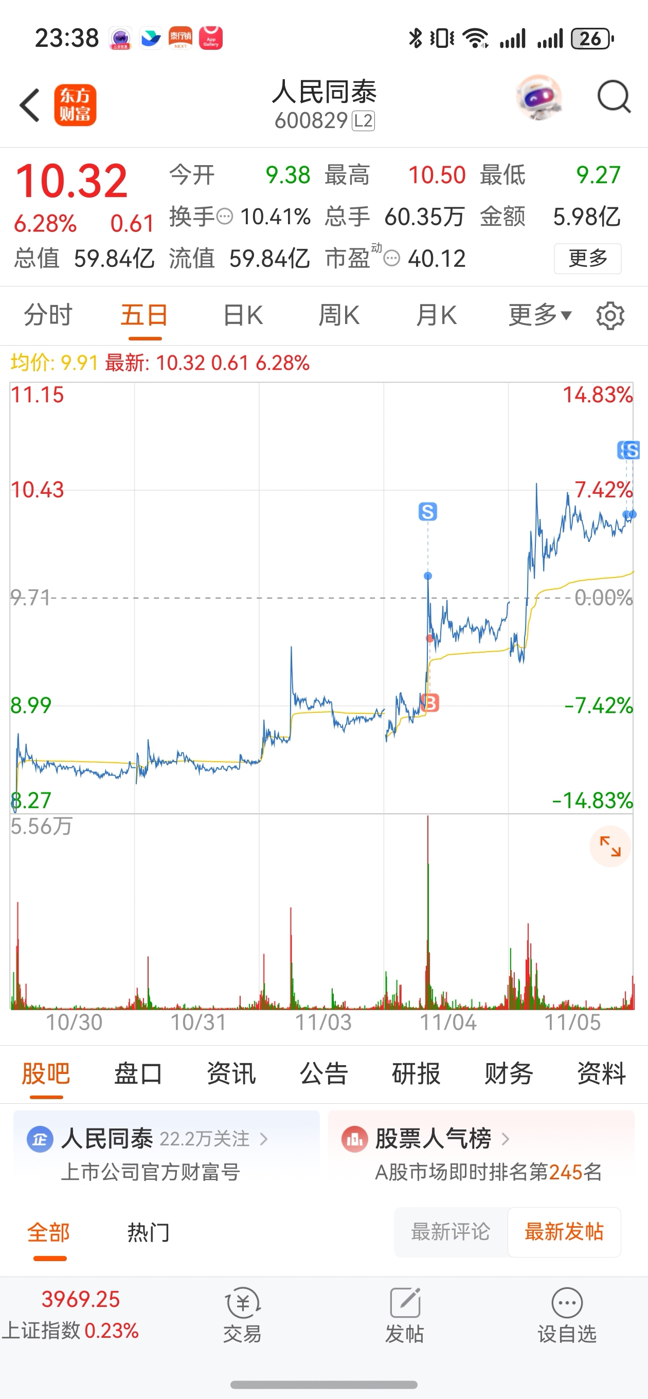 $人民同泰(SH600829)$ 看不懂就随心操作