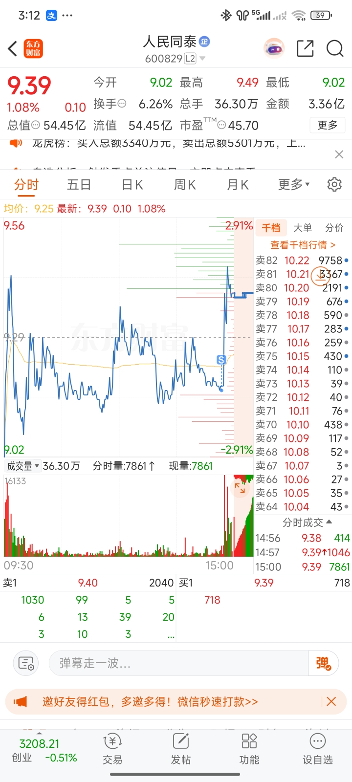 $人民同泰(SH600829)$