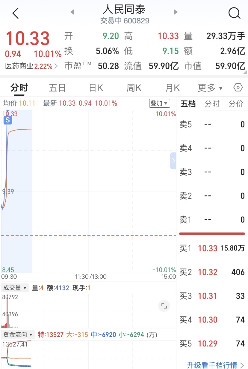 $人民同泰(SH600829)$ 看见板上撤单,继康芝之后再一次没格局,祝留下的兄弟发财了
