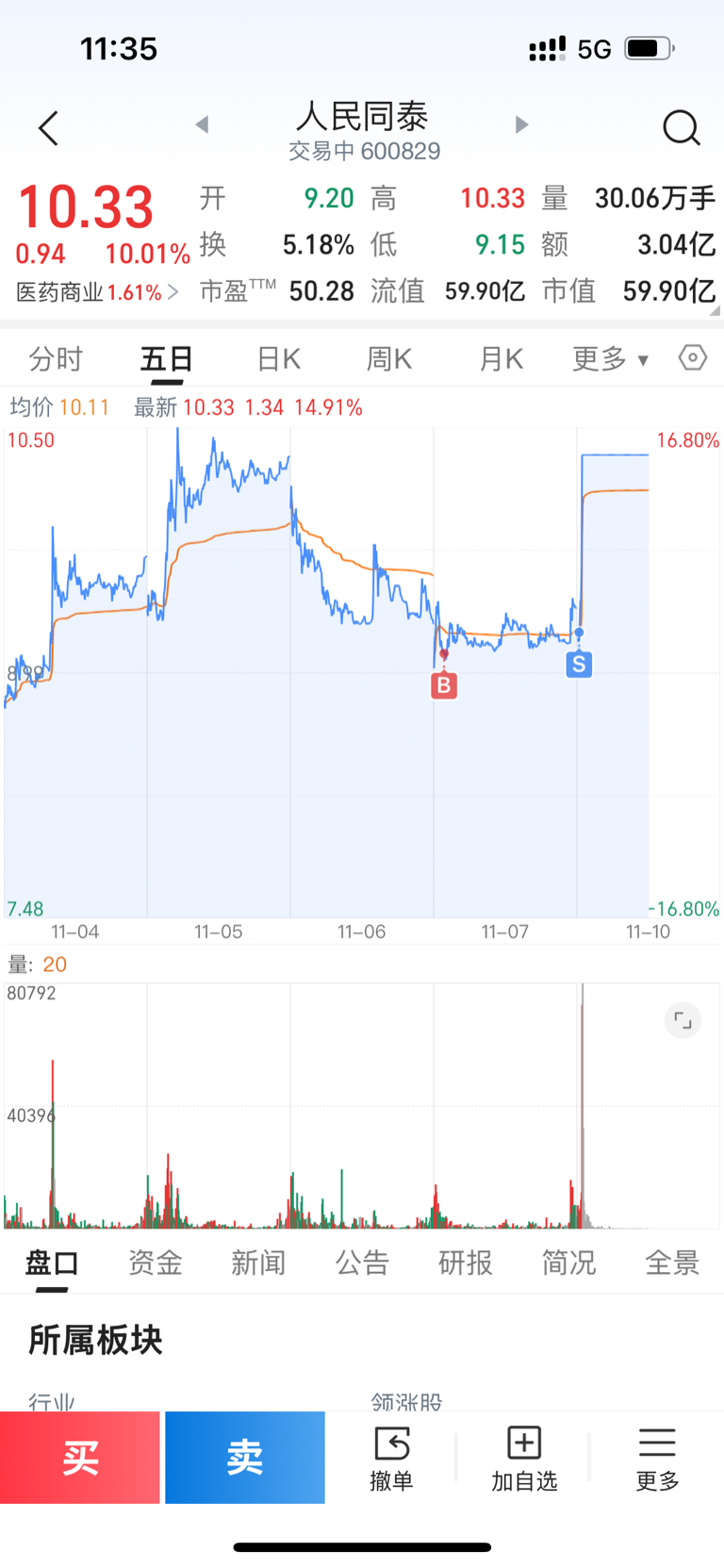 $人民同泰(SH600829)$ 虽然赚了点但卖飞的感觉就是难受,我卖出的原因是我看好别的票急的去追了