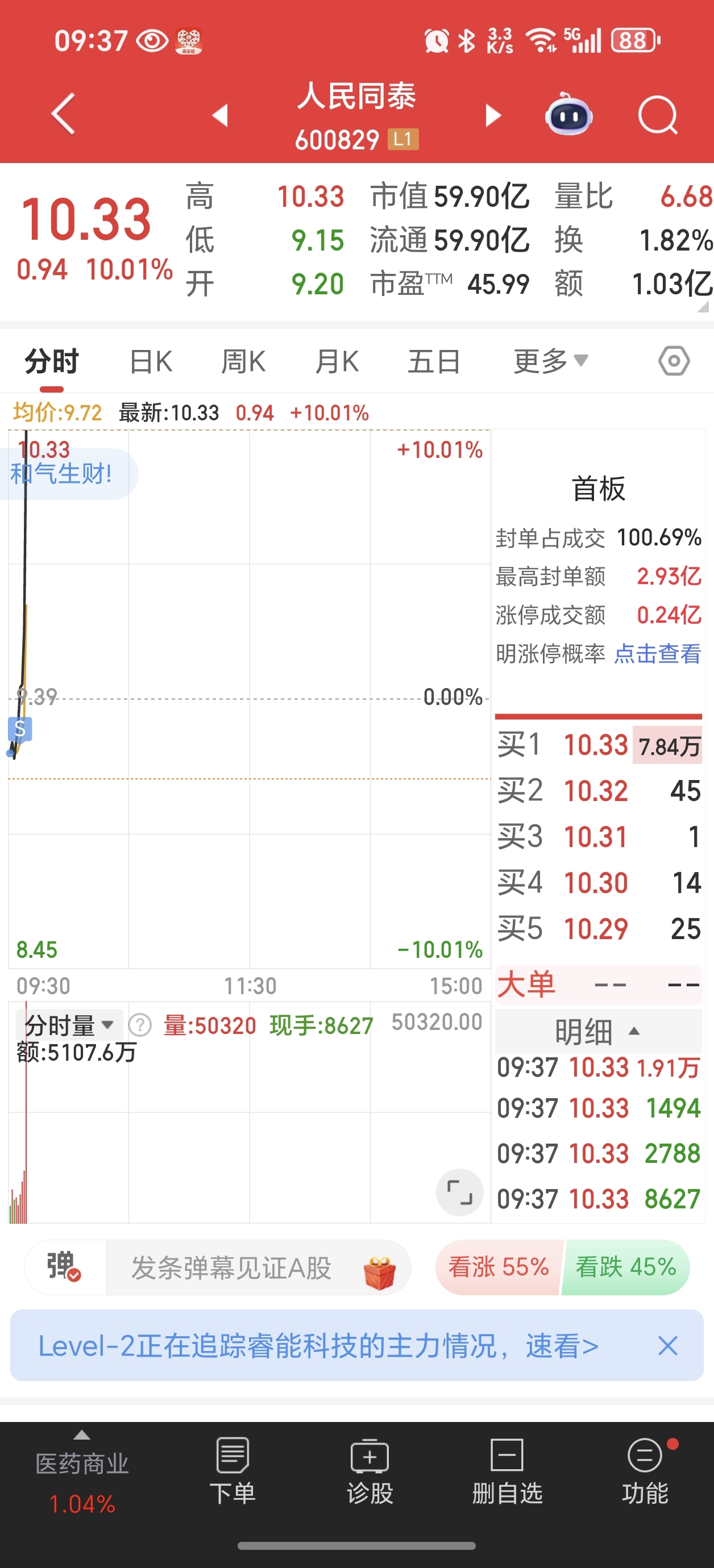 $人民同泰(SH600829)$ 好险啊,差一点就发财了