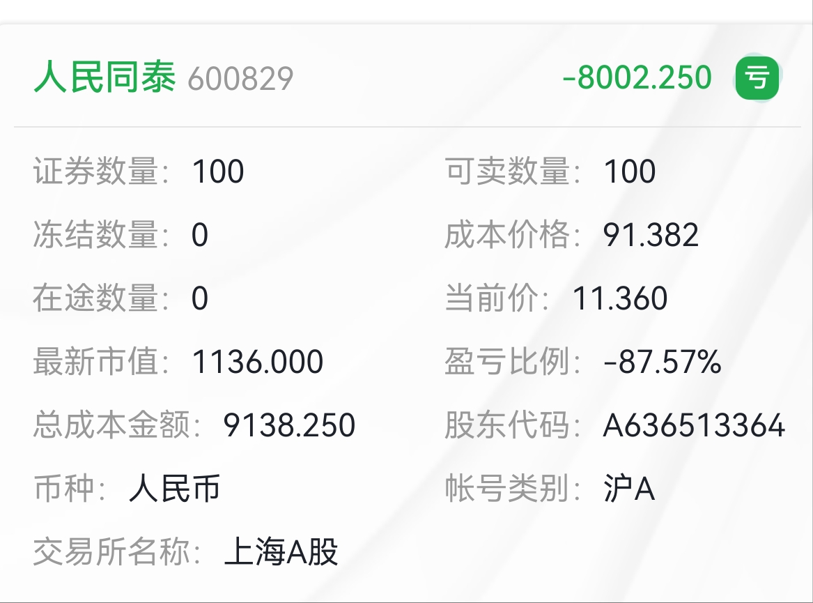 $人民同泰(SH600829)$ 三次回本然后第二天就开始跌 实在受不了留了个底仓 就…………
