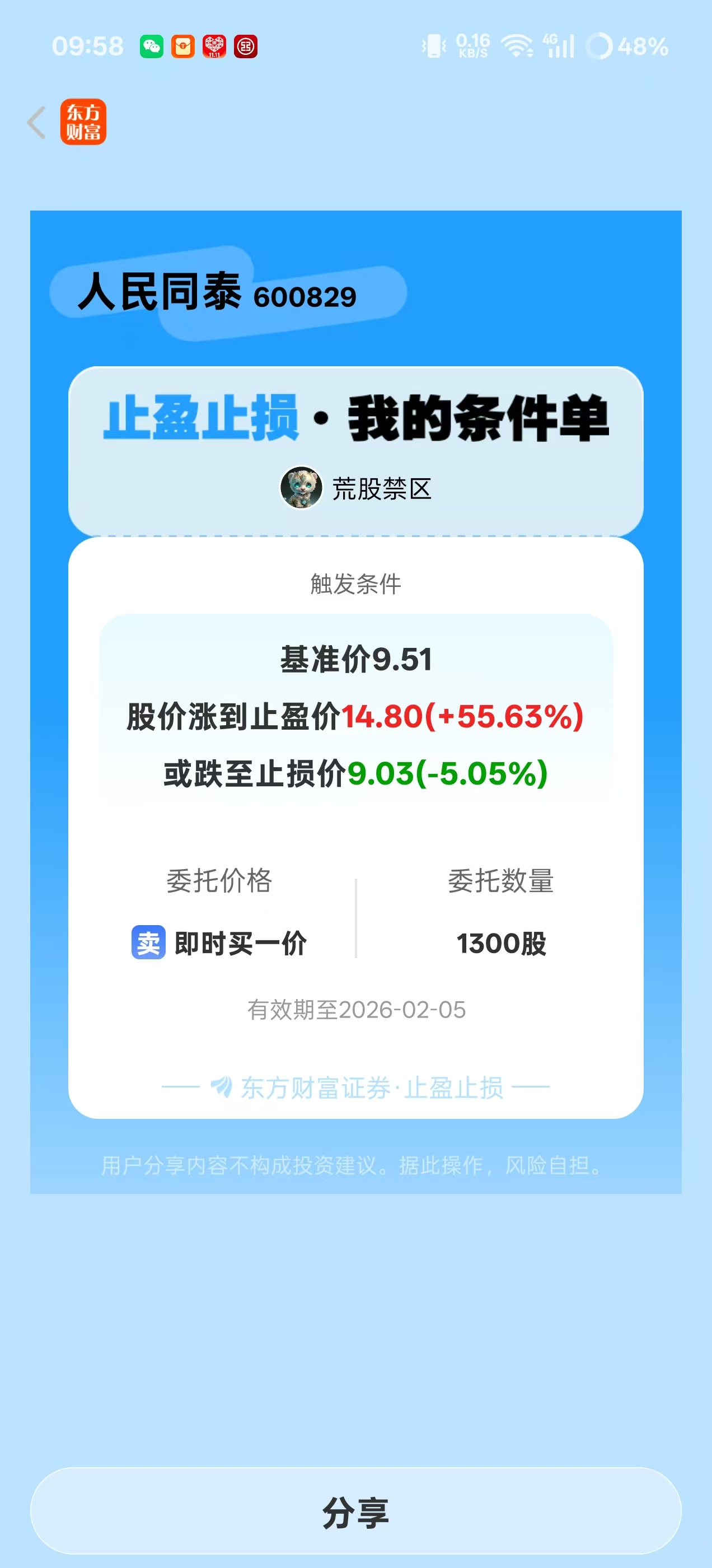 $人民同泰(SH600829)$