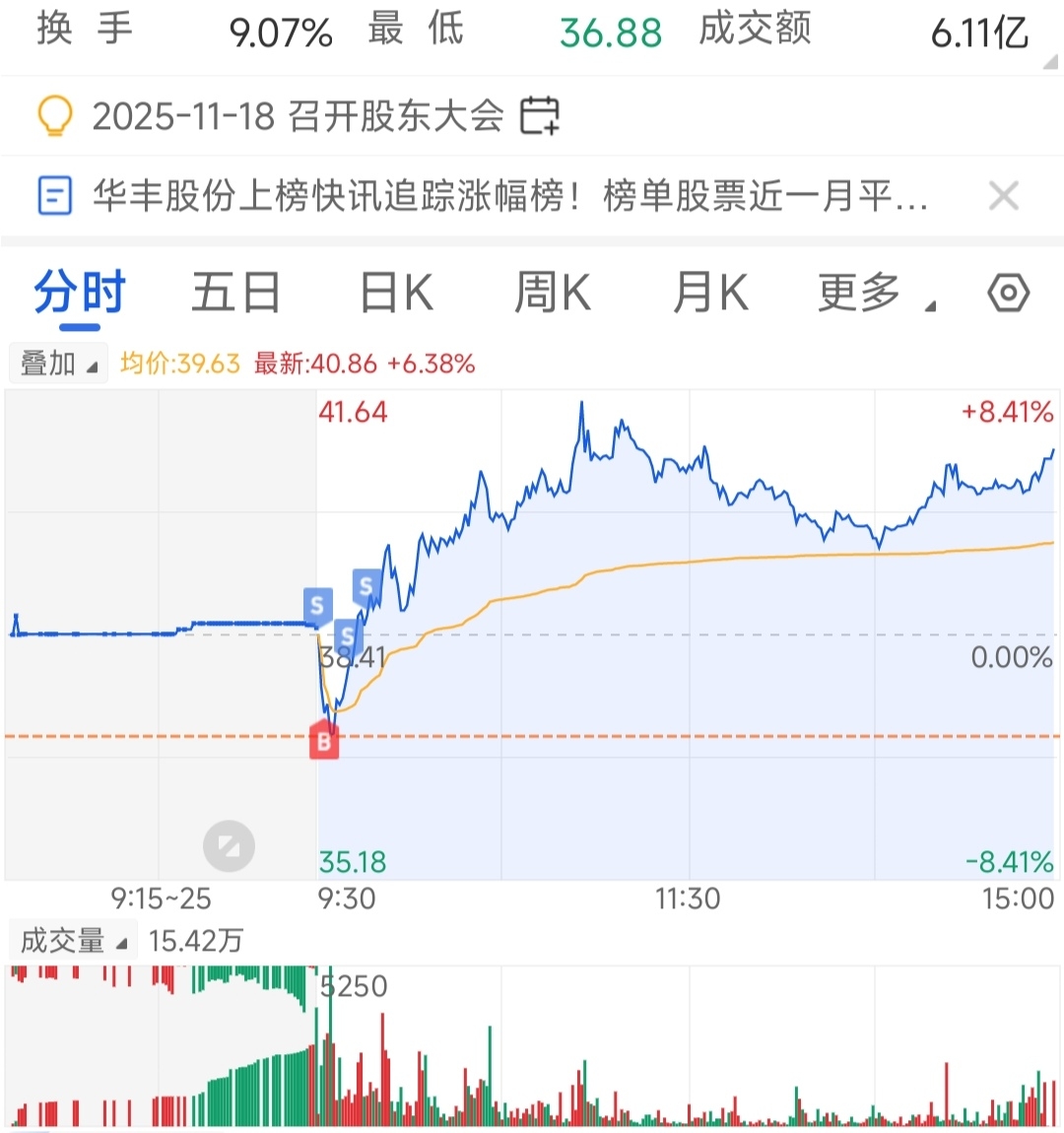 华丰股份,早上看竞价不及预期,竞价出了一半,水下3个点的时候把卖出的一半和人民同泰出来的资金全加上了,-1个点的时候卖出了一部分,因为仓位重此时操作还算正常吧,鬼使神差的又在38.70挂了一单,自此前面的仓位卖光了,回头一看真是一顿操作猛如虎原来是个250,最关键的是出来的资金全进了舍得酒业,现在仓位99.64%,明天若持仓股不能高开,振德就没资金接回了。