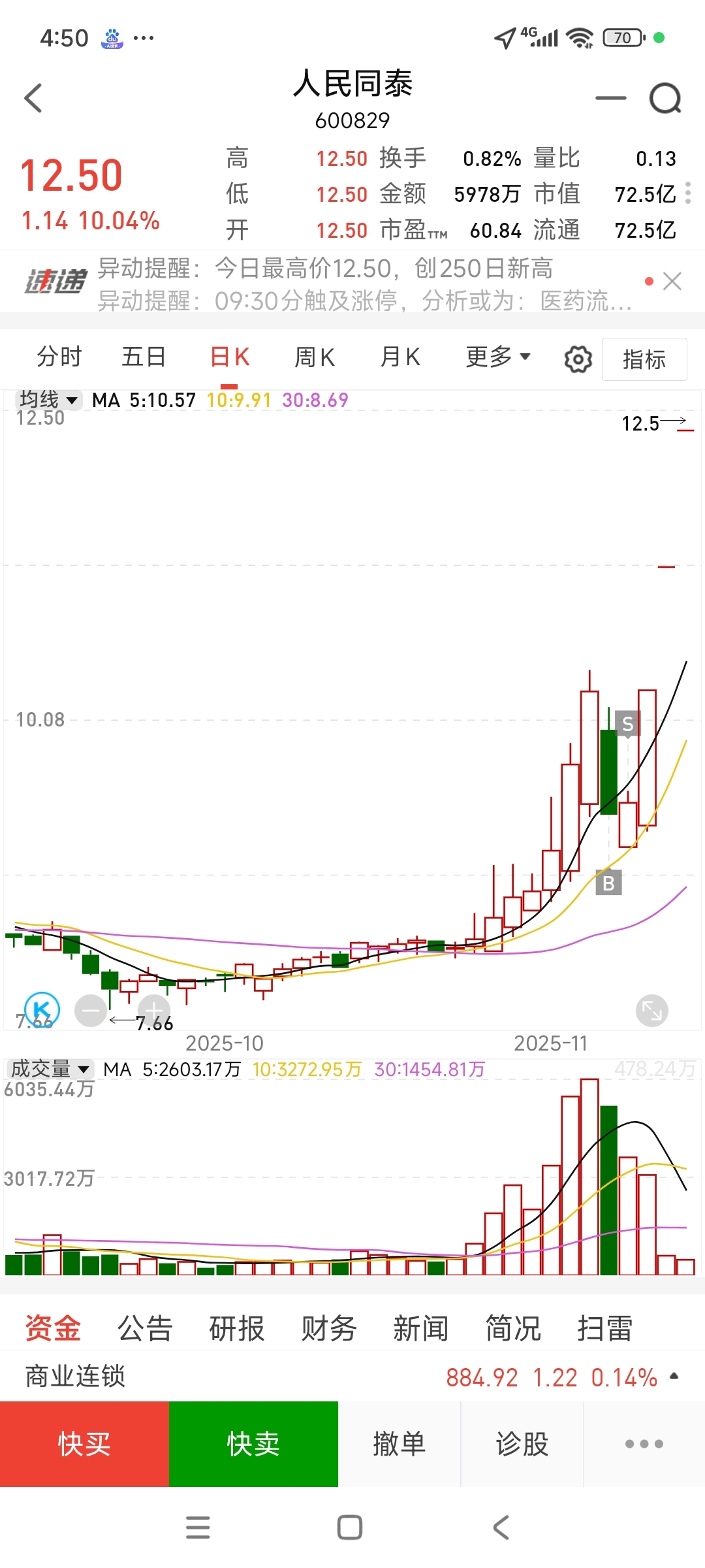 $人民同泰(SH600829)$ 谁有我惨?第一天低吸怒吃-6个点的大面,第二天水下卖了它立马翻红,然后三天三个板