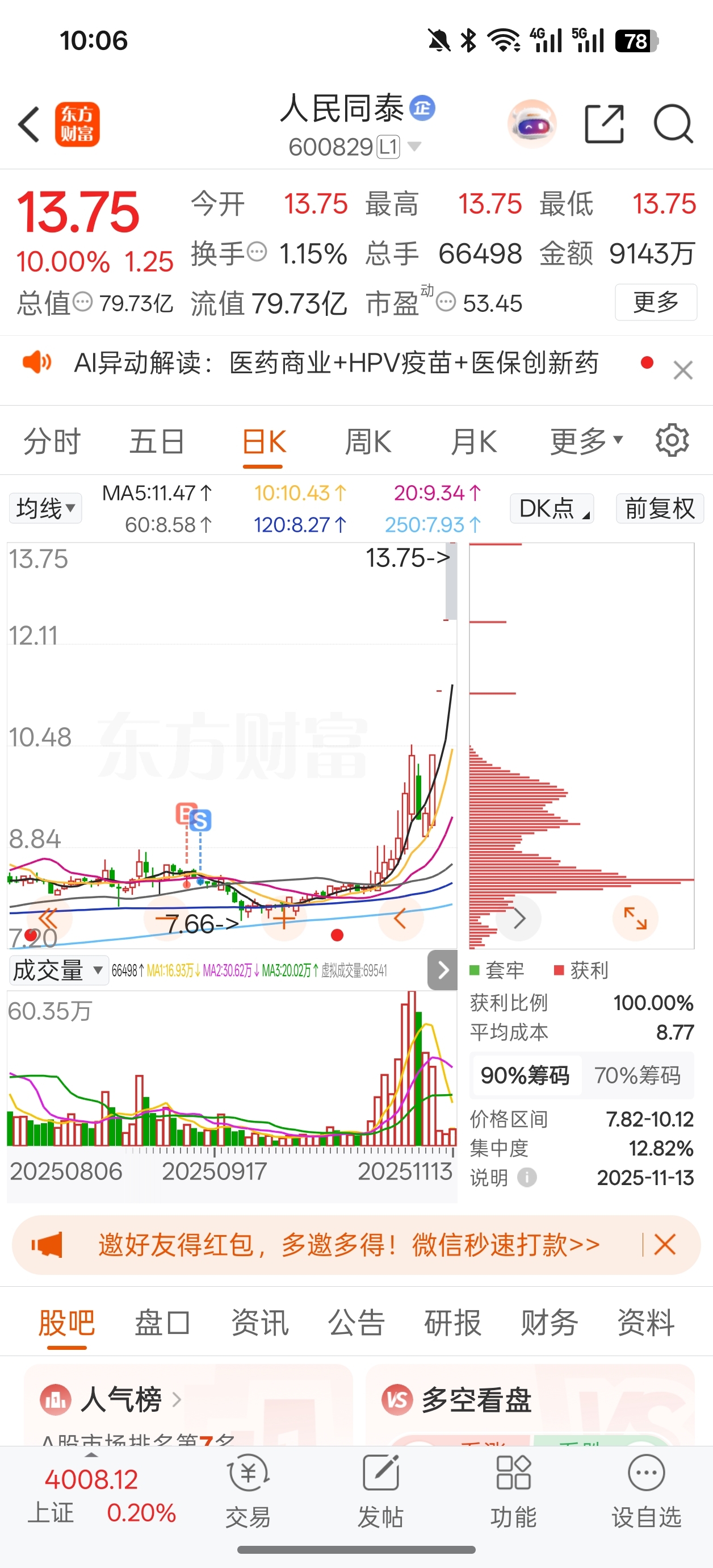 $人民同泰(SH600829)$ 还是意志不够坚定