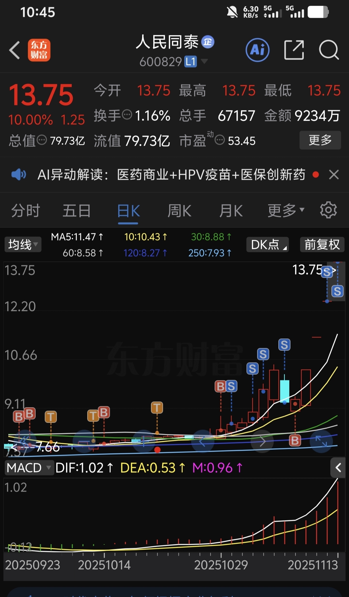 $人民同泰(SH600829)$ 受不了了,跑路。