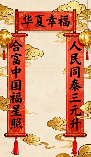 上联:合富中国福星耀,下联:人民同泰三元扬,横批:华夏幸福。还有没更好的春联?