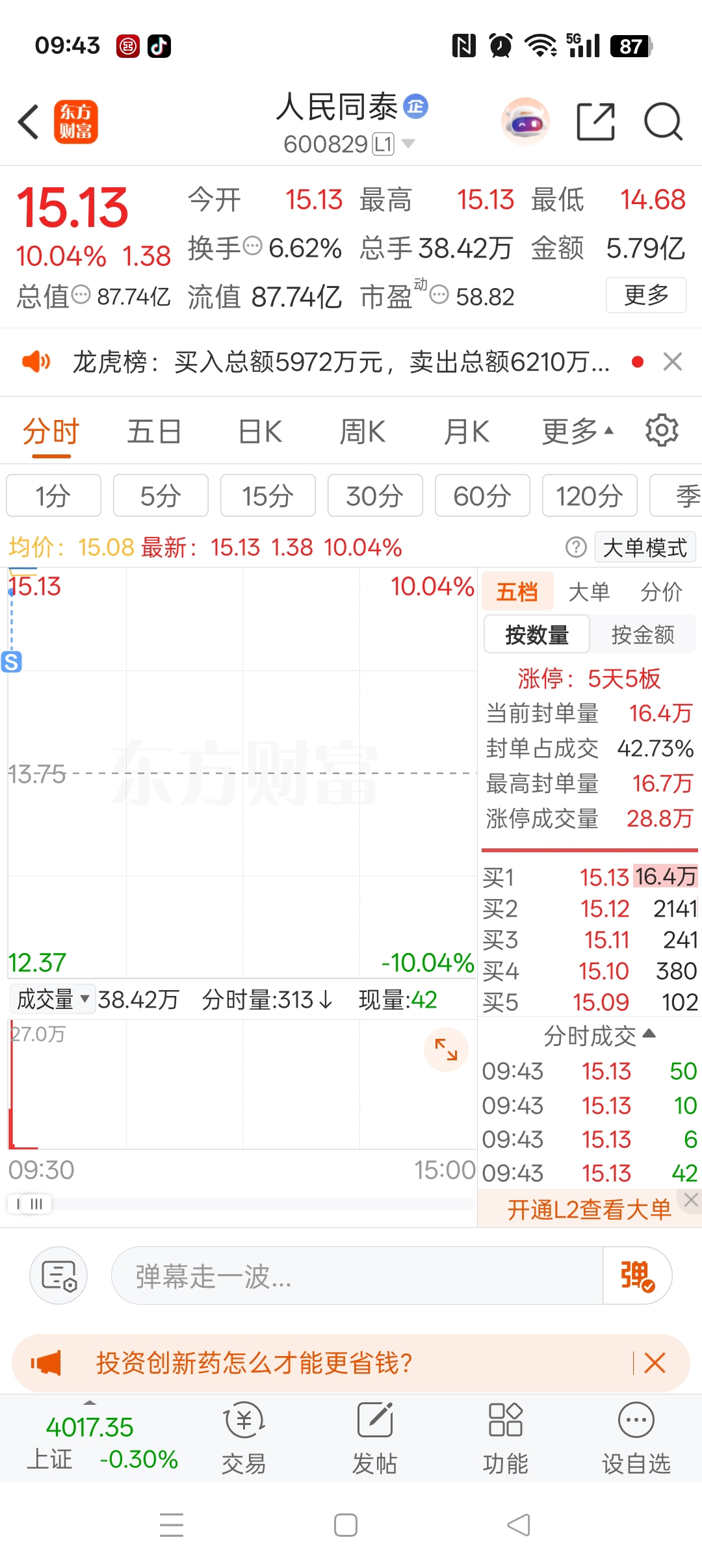 $人民同泰(SH600829)$ 第一次用条件单开盘卖出,卖在这个点的吗?