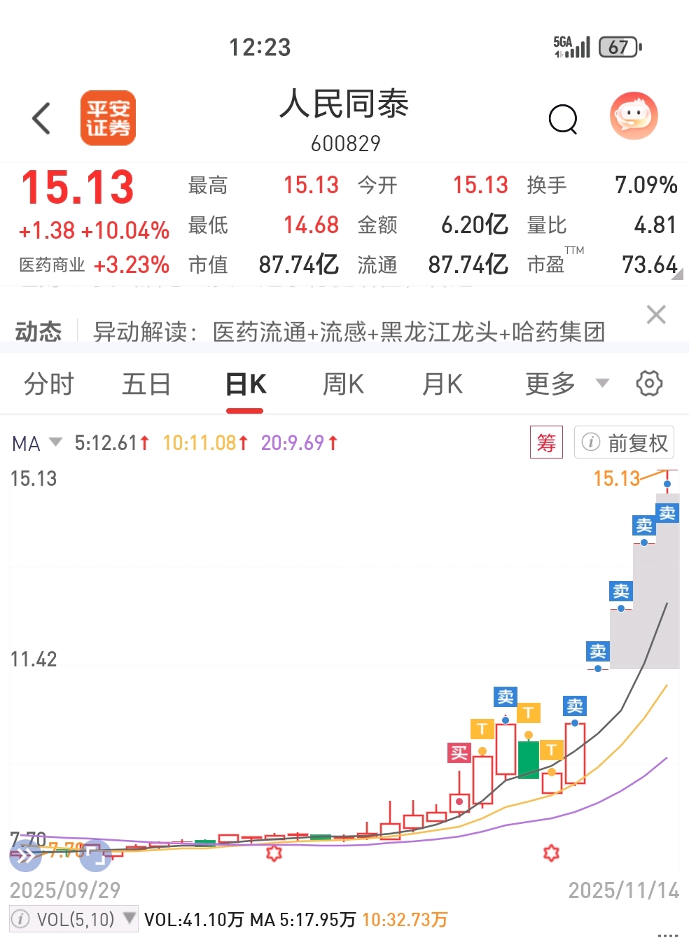 $人民同泰(SH600829)$ 清仓下车,祝人民继续大涨