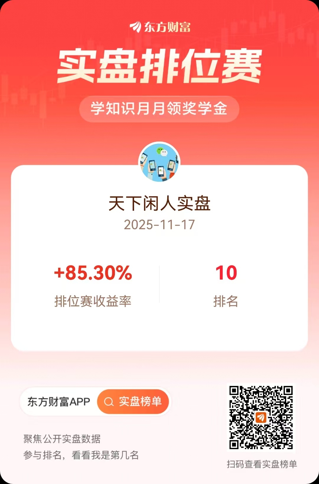 $人民同泰(SH600829)$ 本人打入东方财富实盘排位赛第十名了