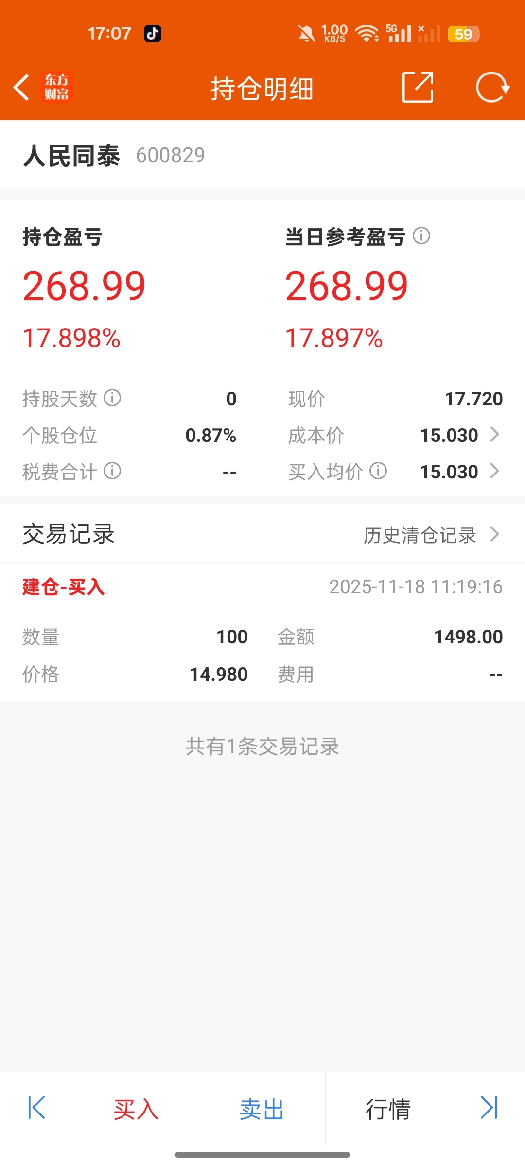 $人民同泰(SH600829)$