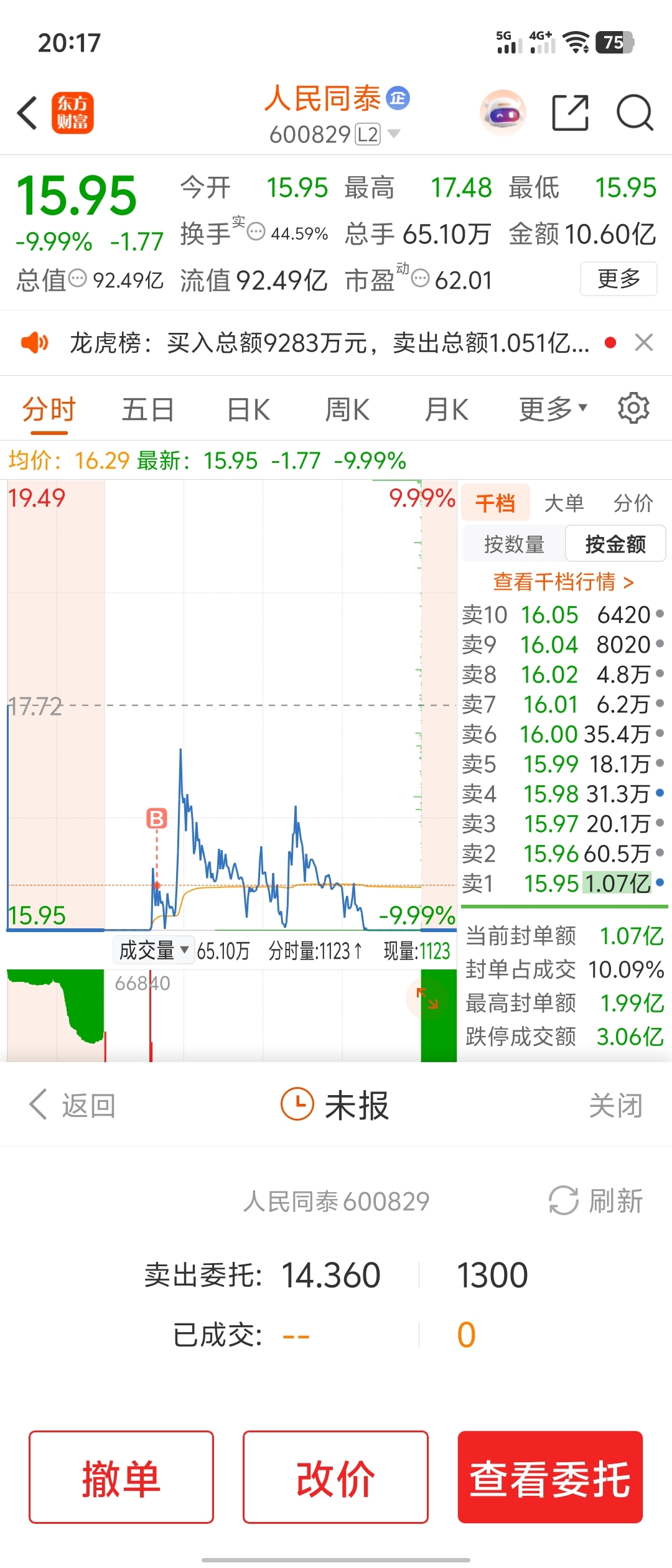 $人民同泰(SH600829)$ 我先挂地板走了,看到减持就心烦