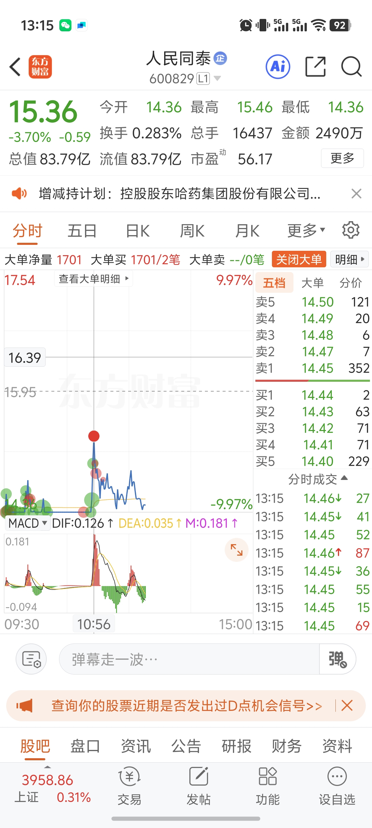 $人民同泰(SH600829)$ 100万的兄弟是谁呢