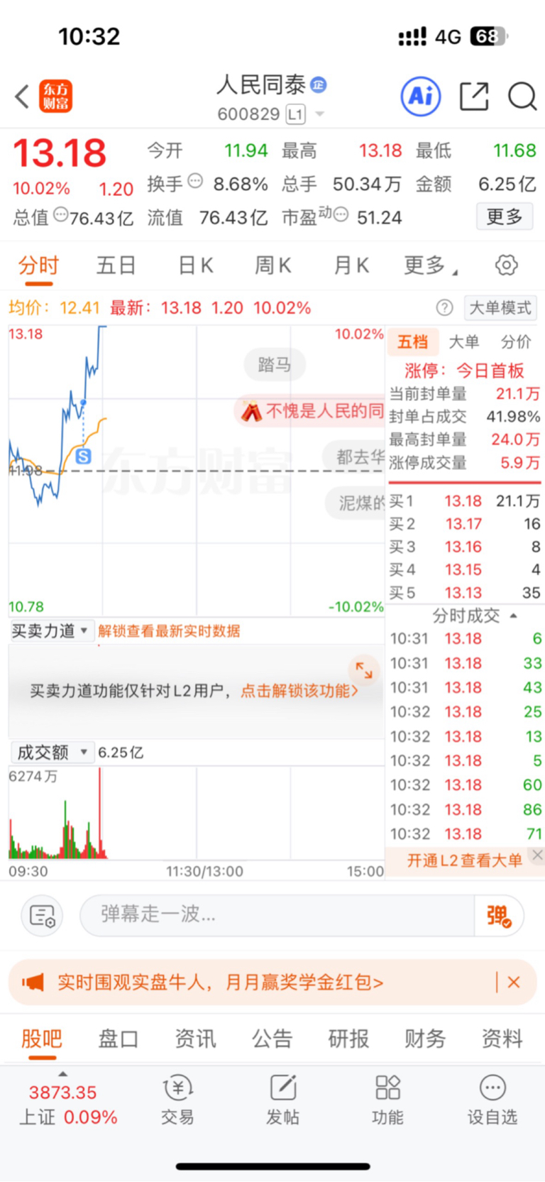 $人民同泰(SH600829)$ 卖飞了
