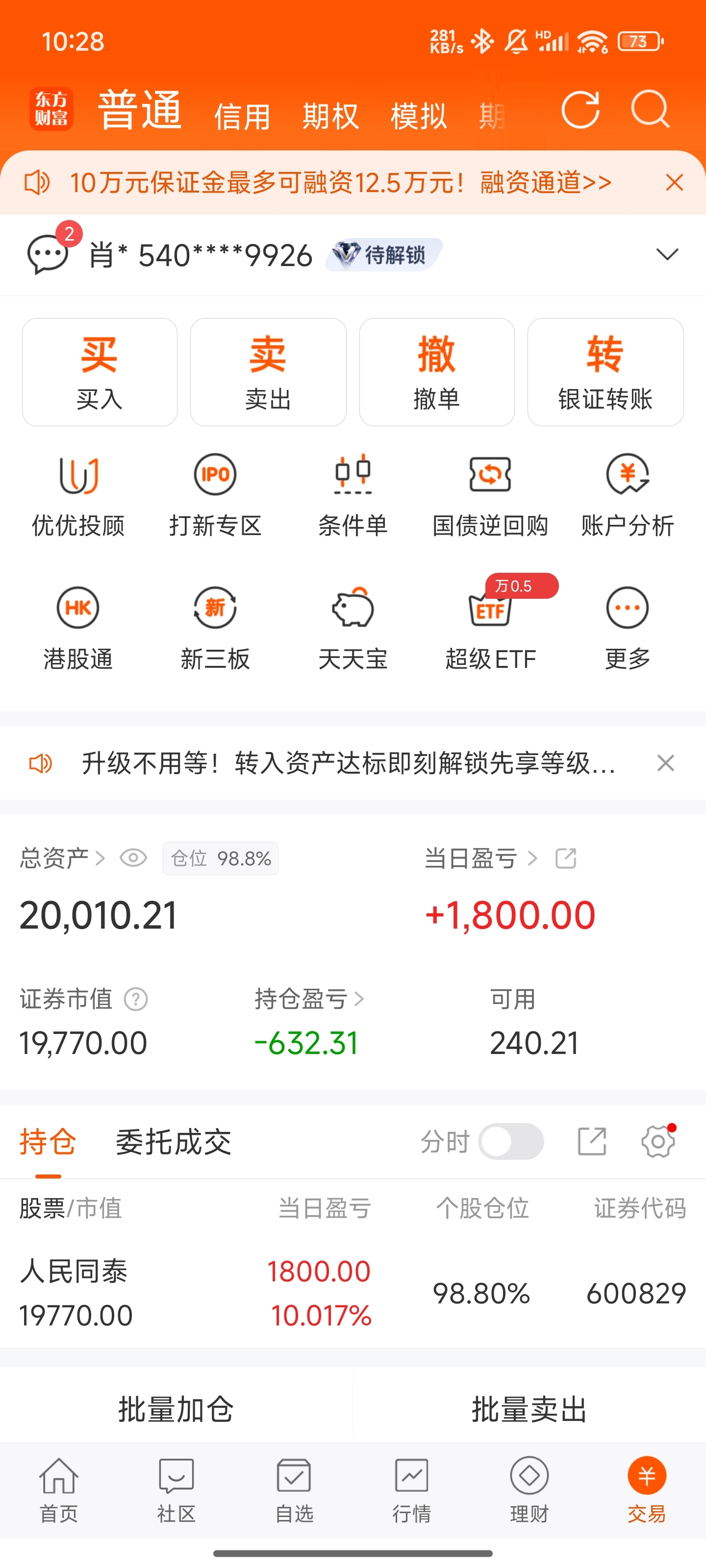 $人民同泰(SH600829)$