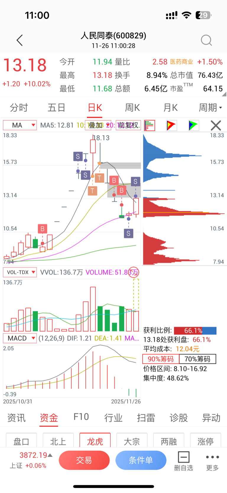 $人民同泰(SH600829)$ 减仓了xdm