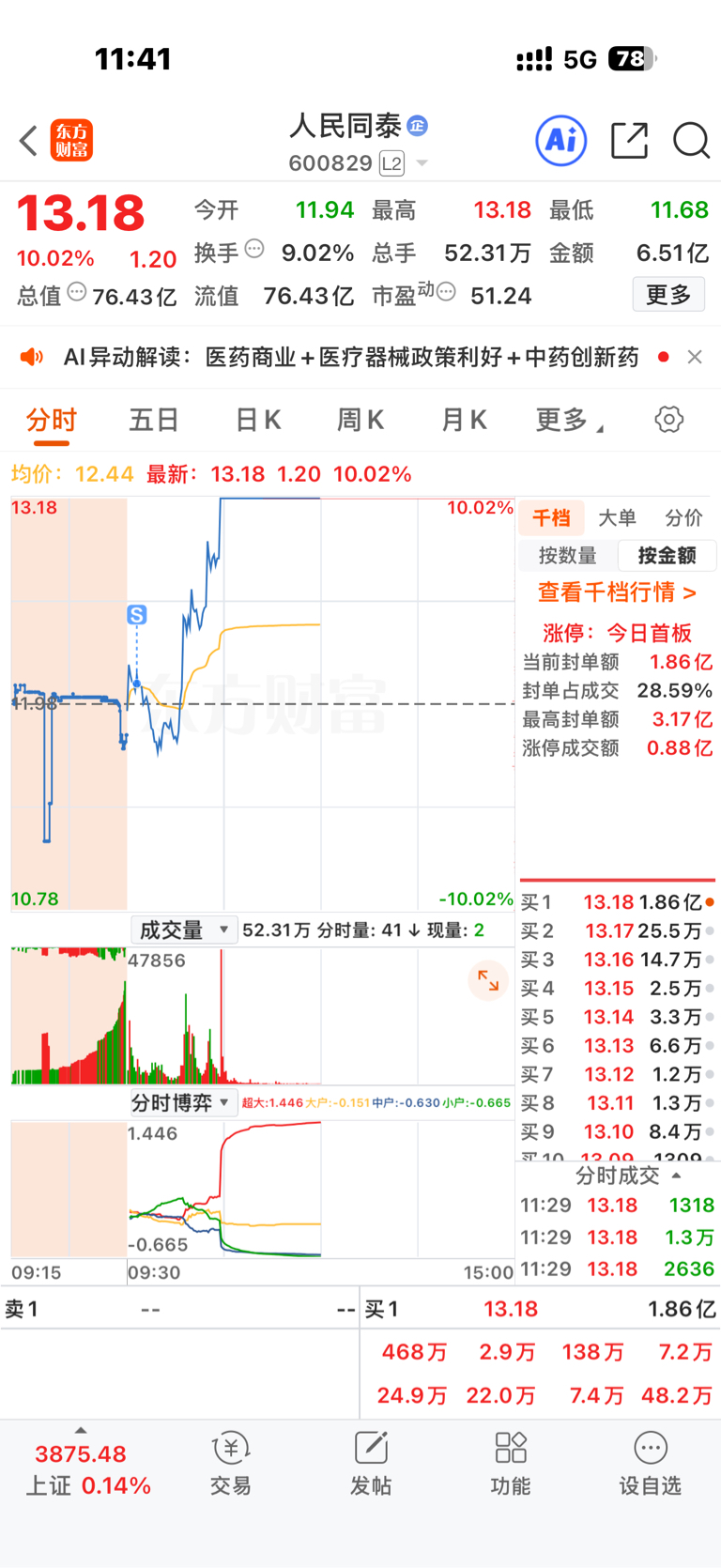 $人民同泰(SH600829)$ 啥也不说了,上图