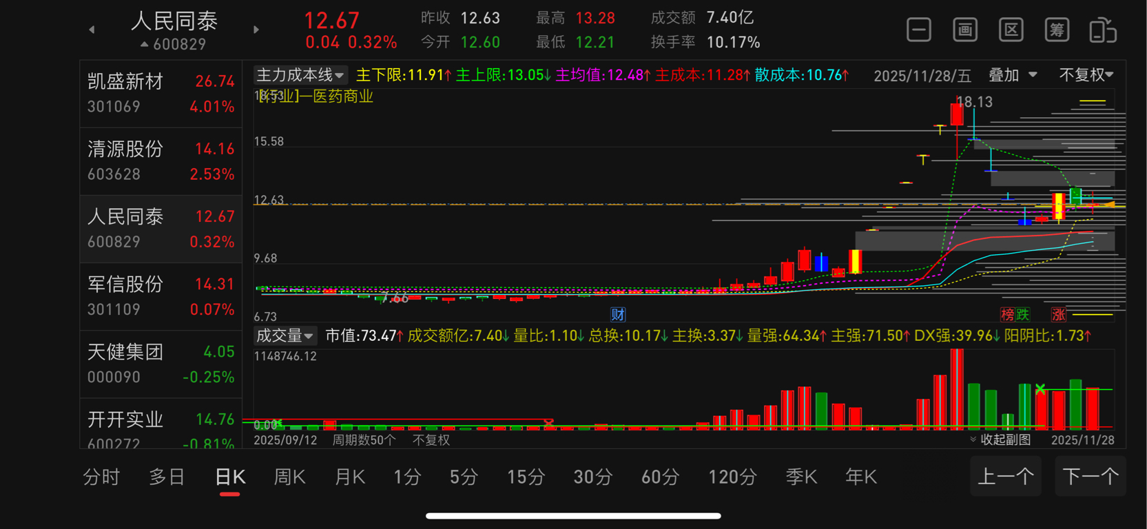 $人民同泰(SH600829)$ 上限和下限快速向均值靠笼,这个地方主力重拾筹码。