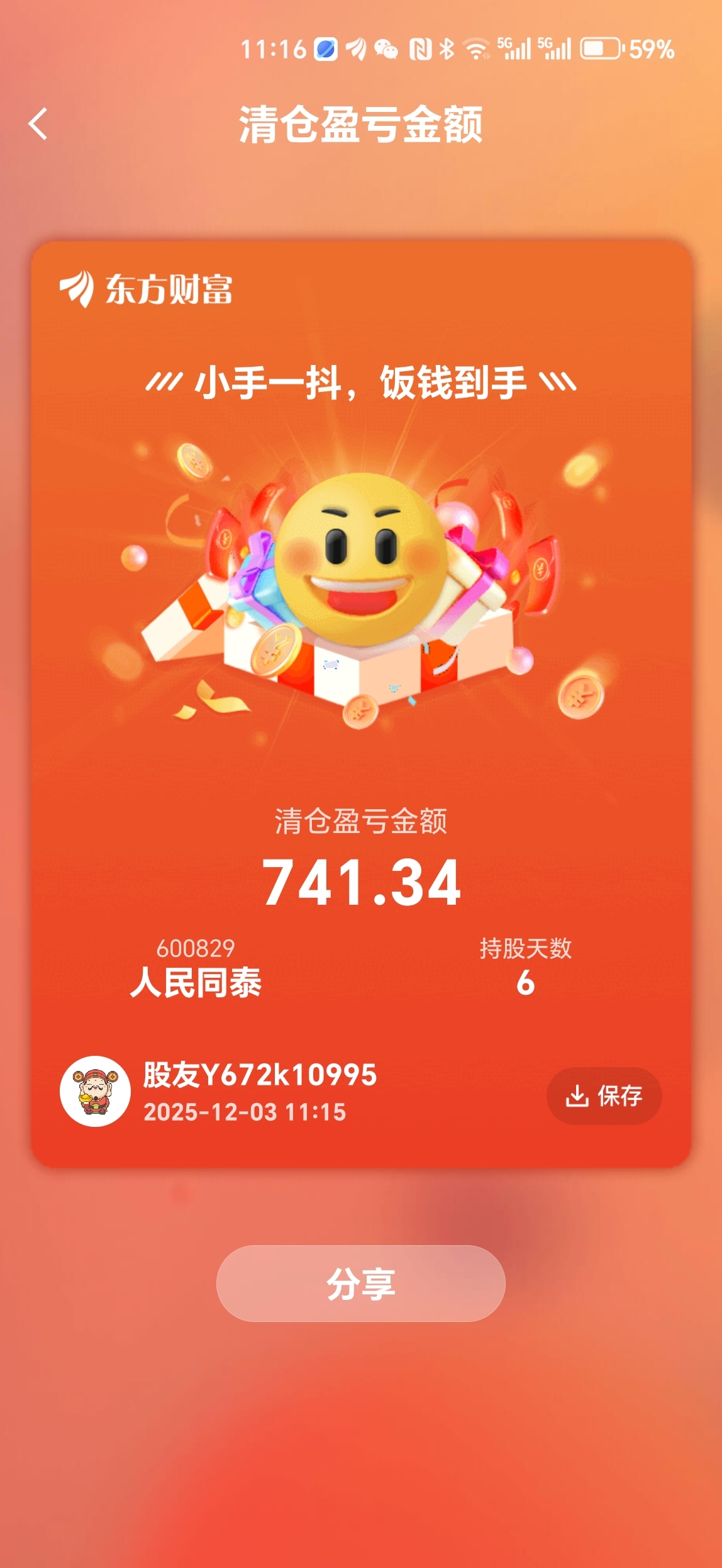 我就买500股,赚了十个点,先走了。留下的发财