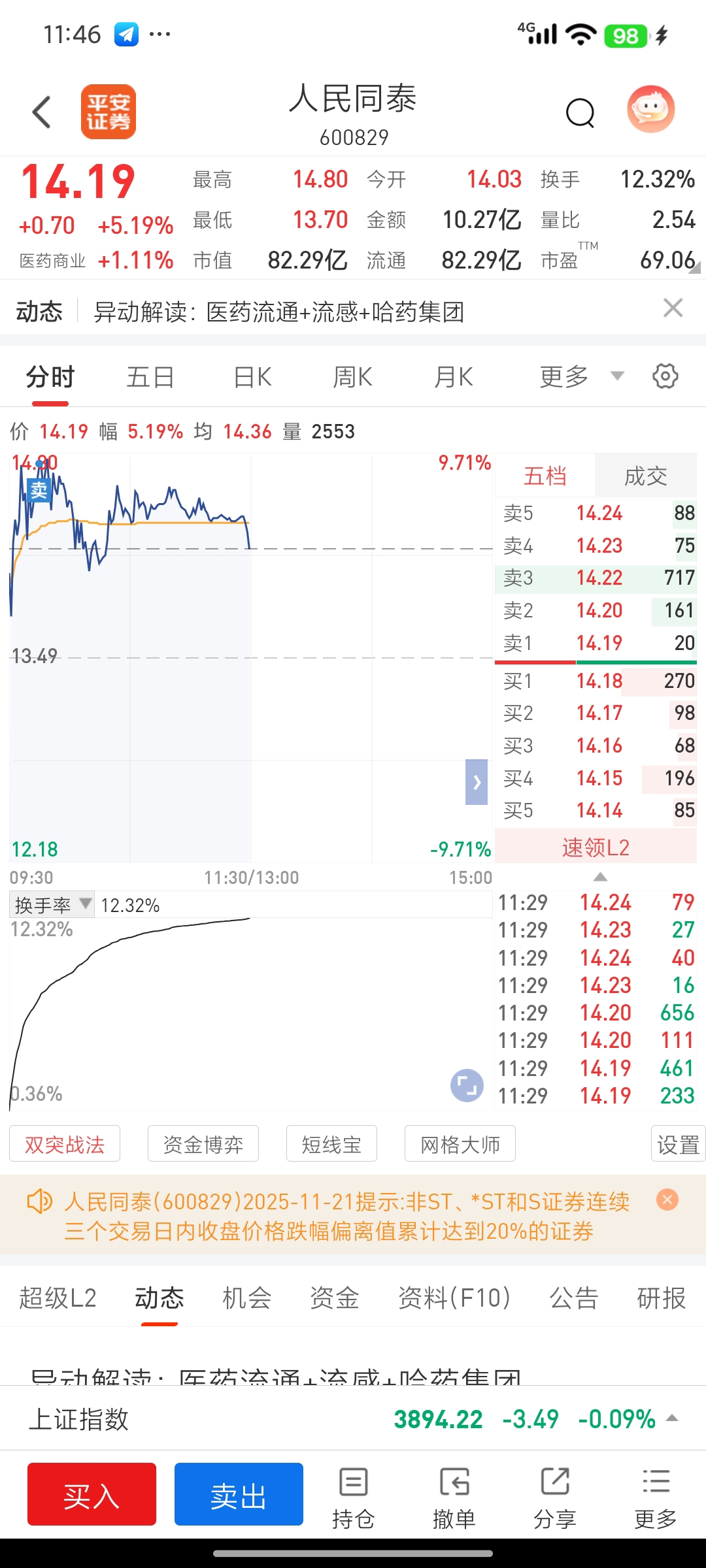 $人民同泰(SH600829)$ 有本事上去让我后悔
