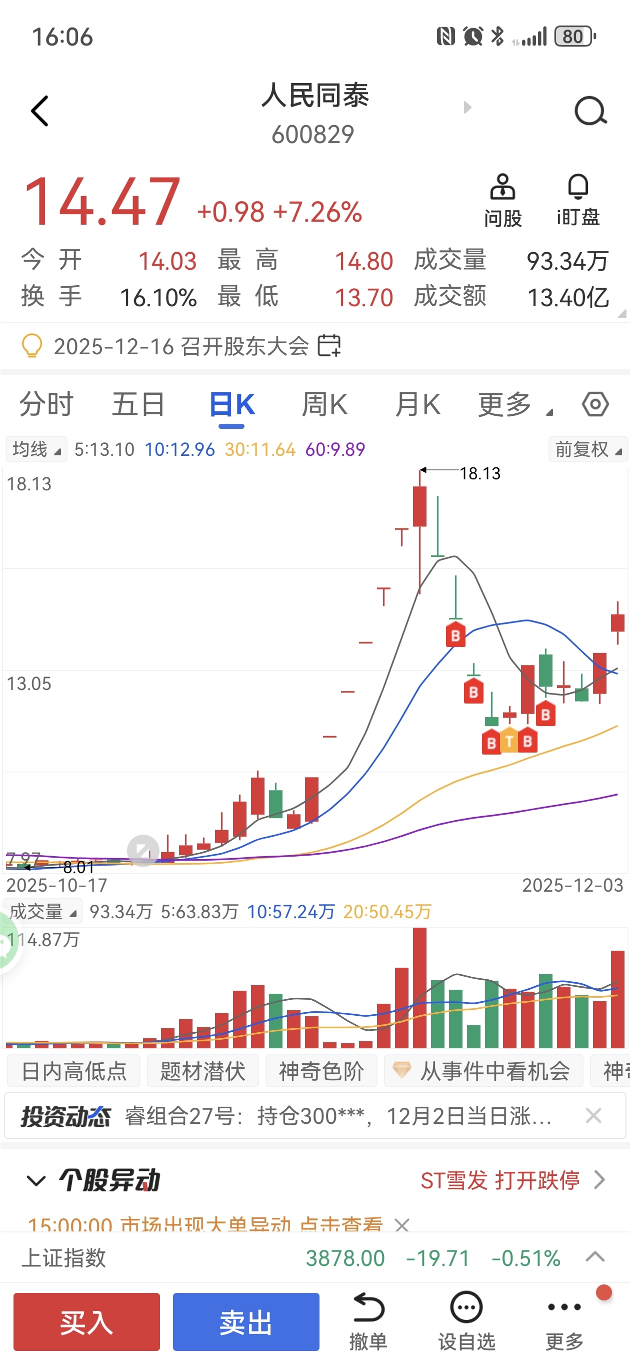 $人民同泰(SH600829)$ 锁仓不动是明智选择