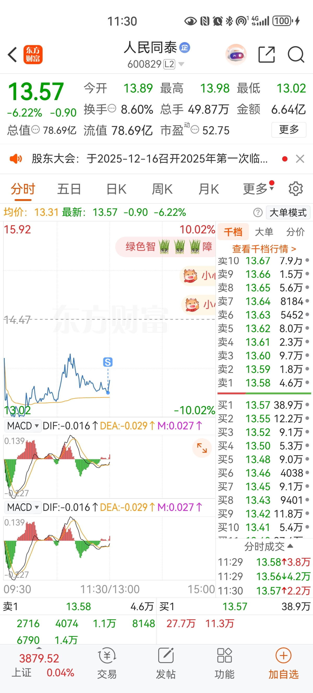 $人民同泰(SH600829)$ 不是,我刚卖你就拉。就等我呢嘛