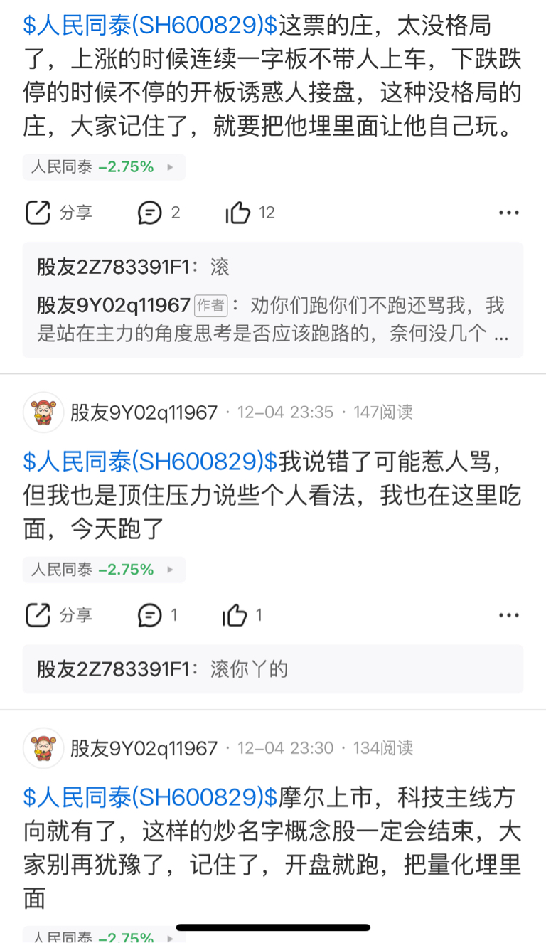 $人民同泰(SH600829)$