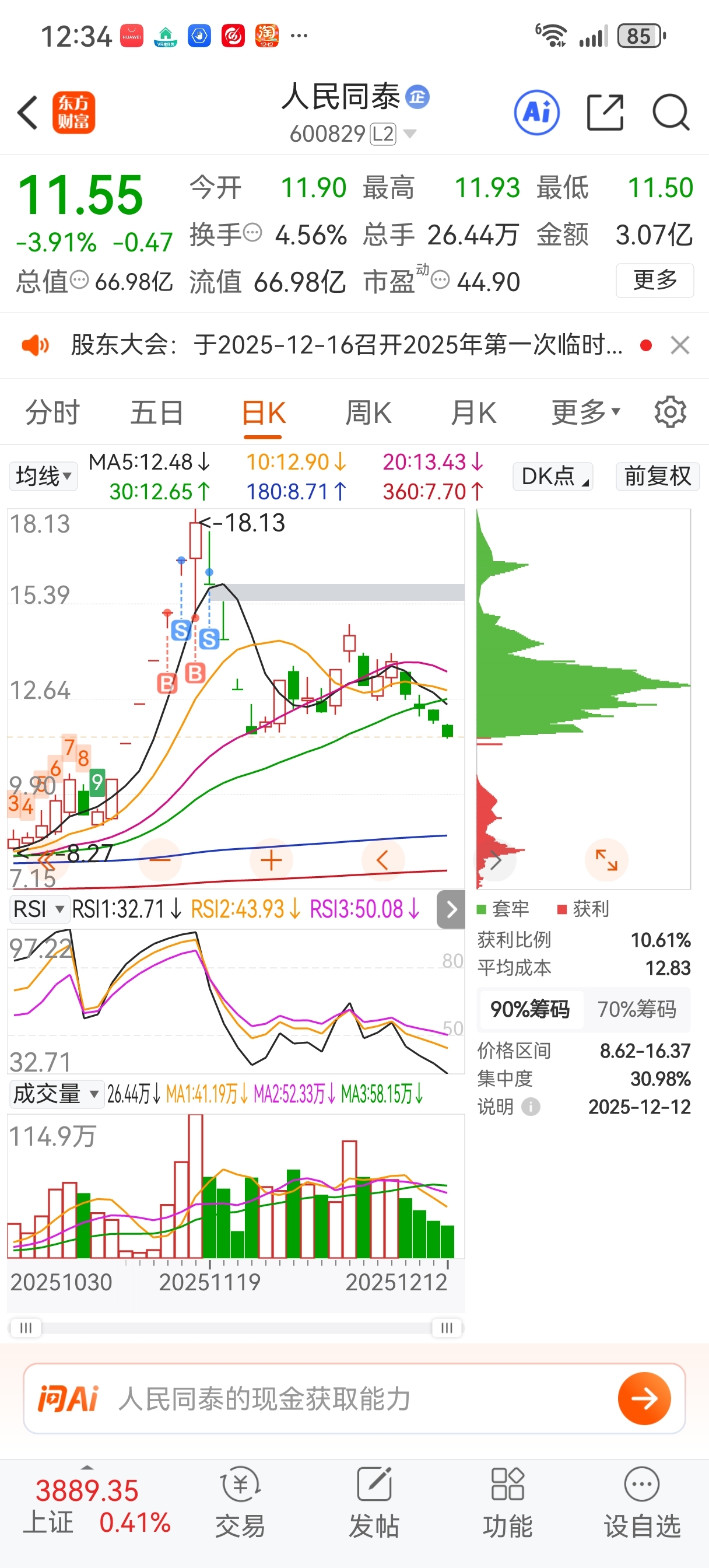 $人民同泰(SH600829)$ 上方全是套牢盘,大盘5000点解套