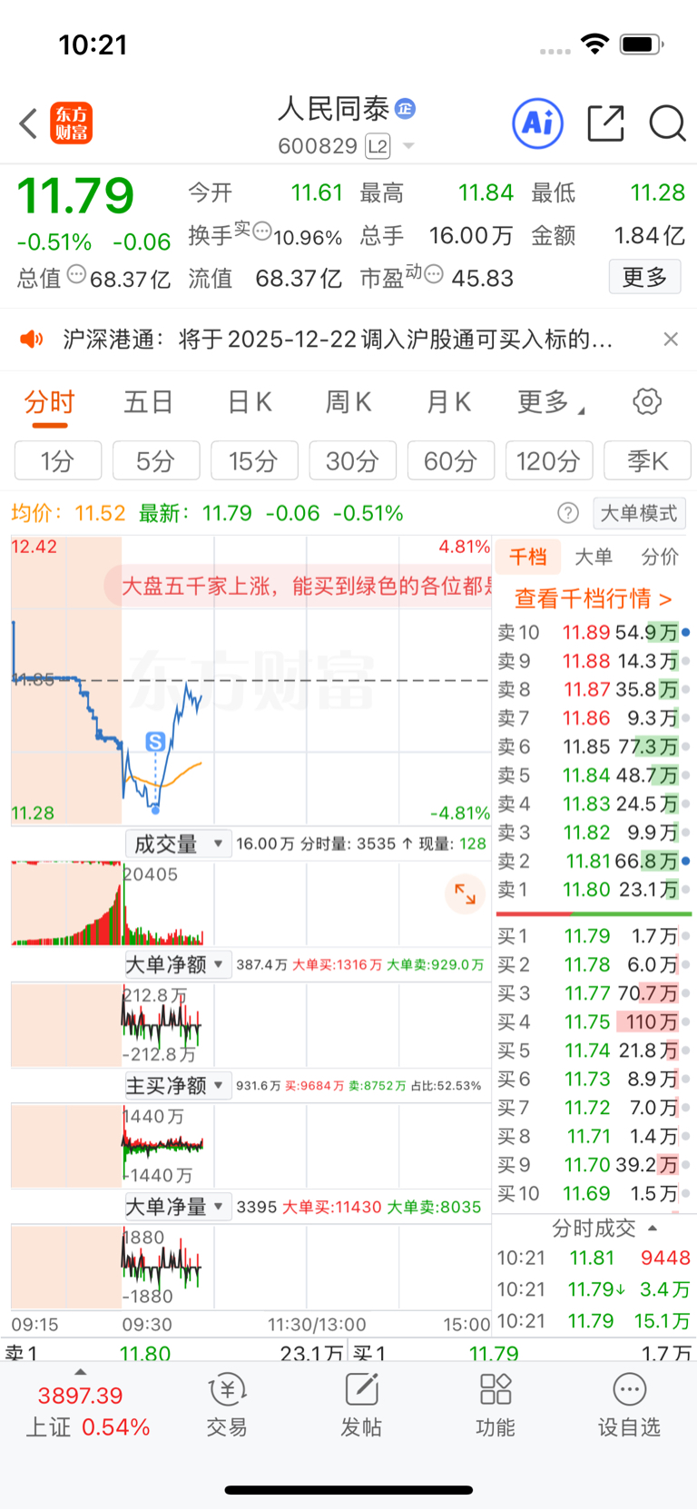 $人民同泰(SH600829)$