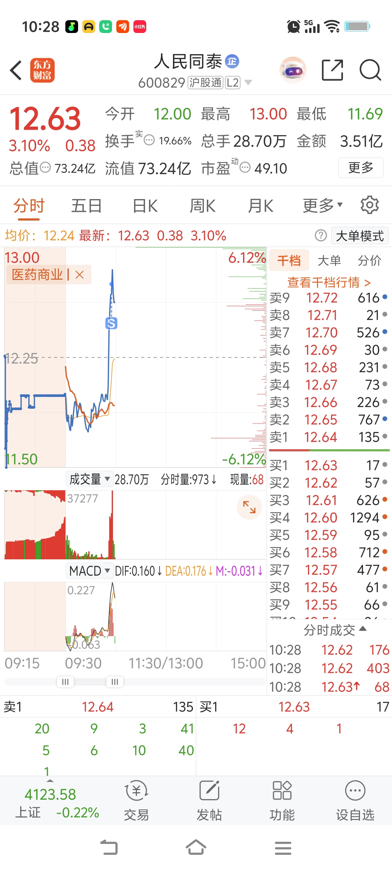 $人民同泰(SH600829)$ 感觉能冲涨停,但我怕想买的买不到,先撤了