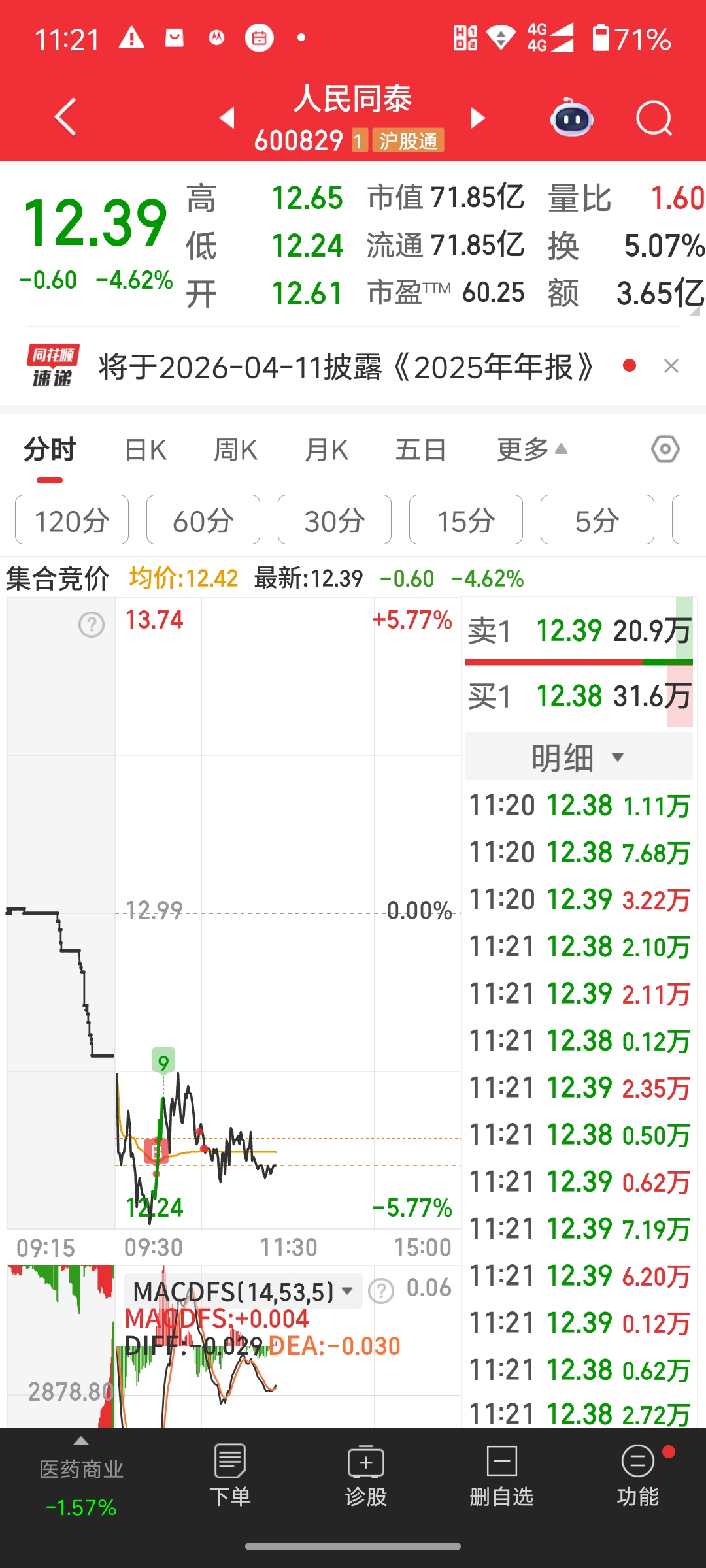 $人民同泰(SH600829)$