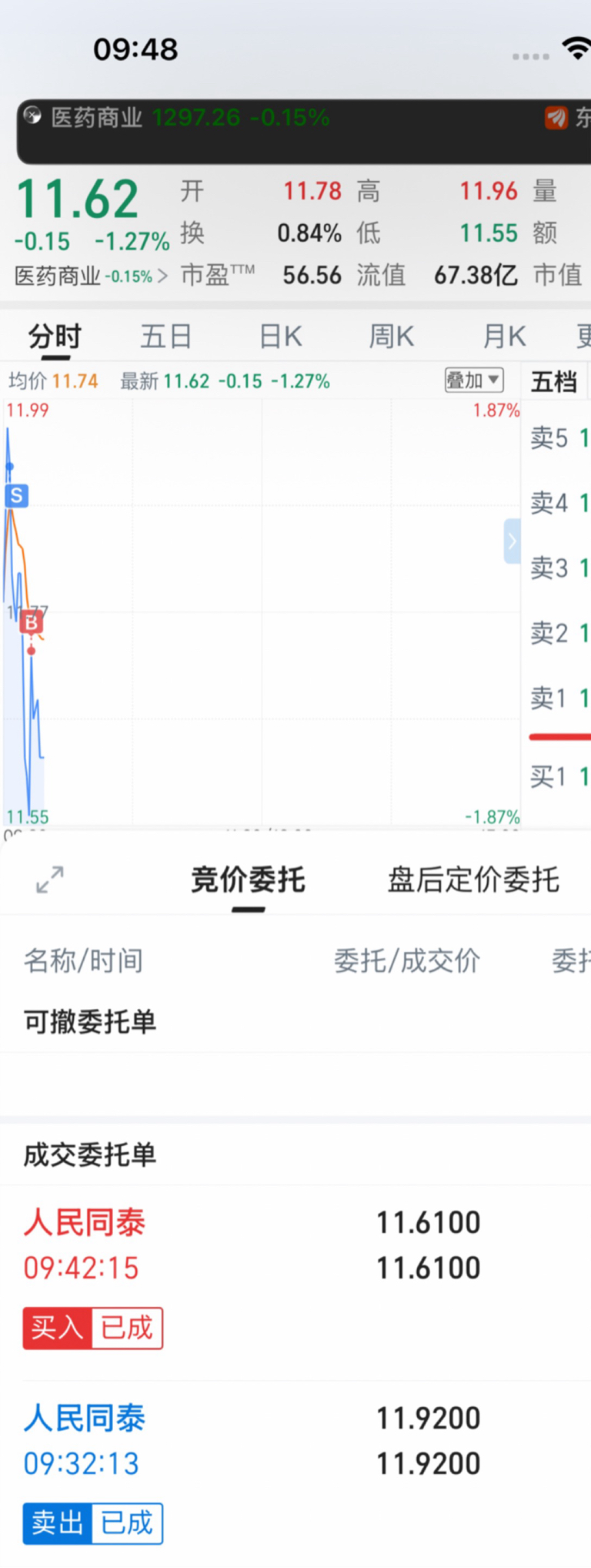 $人民同泰(SH600829)$ 听天由命,看好你,最高点跑,11.60加回来全仓了。