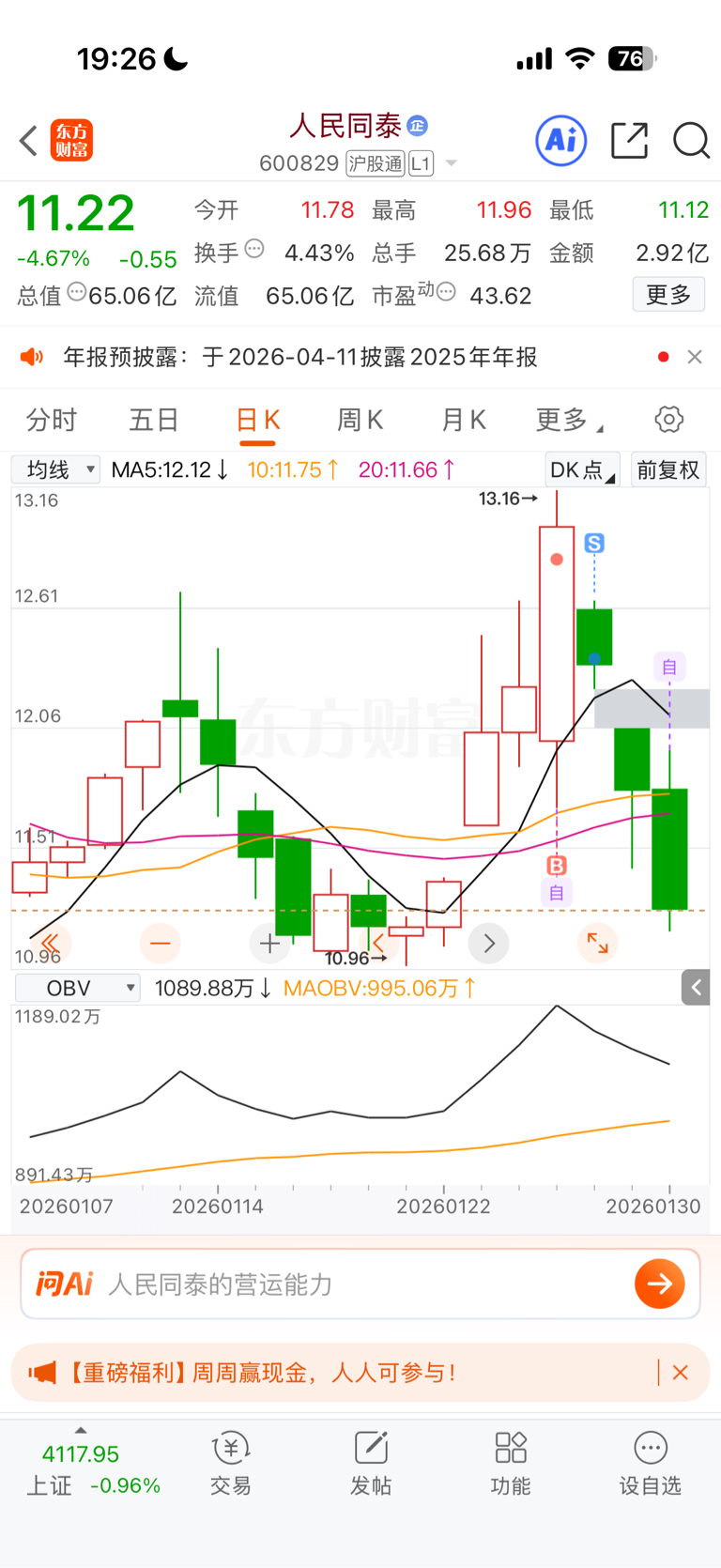 $人民同泰(SH600829)$ 救救我